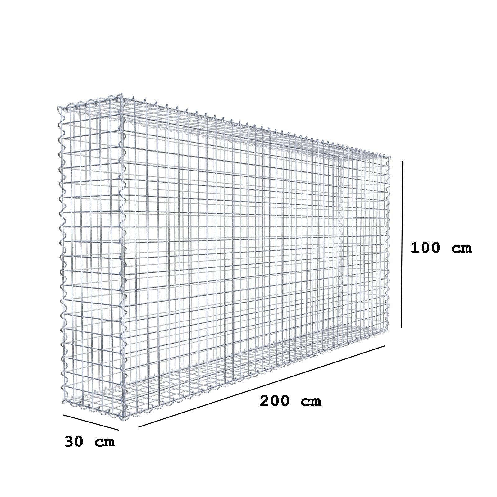 Gabion 200 cm x 100 cm x 30 cm (L x H x D), maskestørrelse 5 cm x 5 cm, spiral