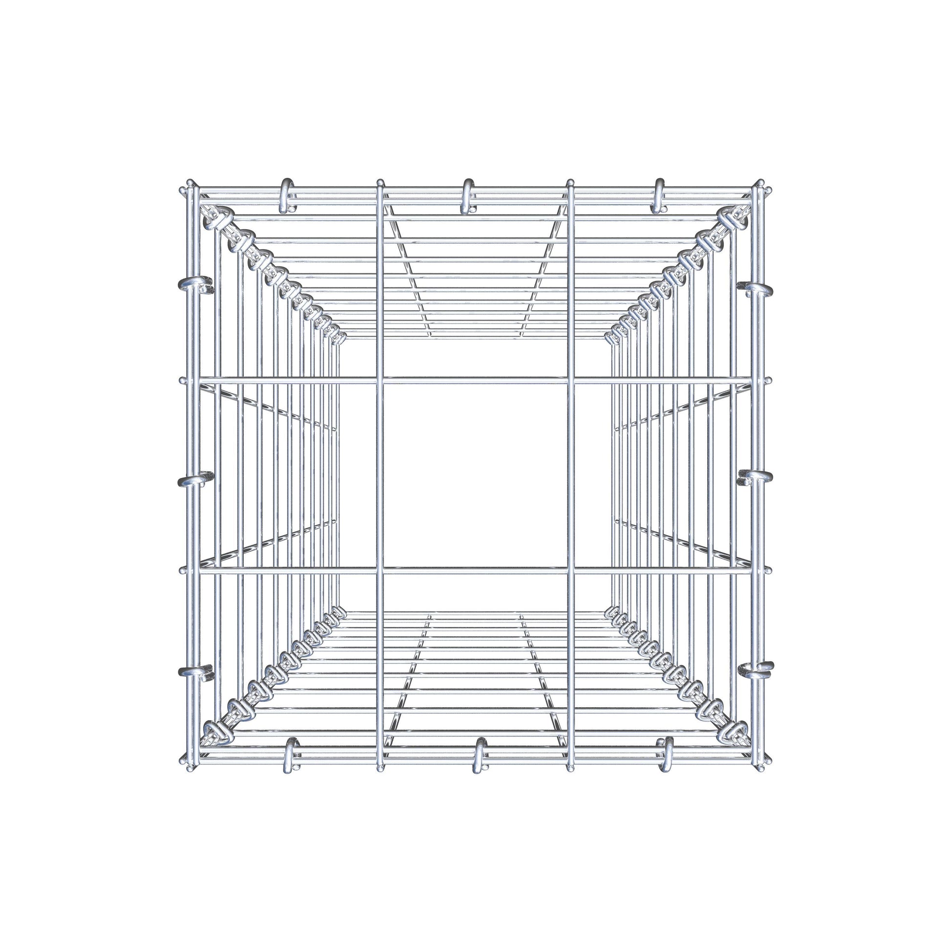 - Hinweis: kein eigenes Bodengitter – die Verbindung erfolgt über das Deckelgitter und den Verschluss der unteren Gabione.