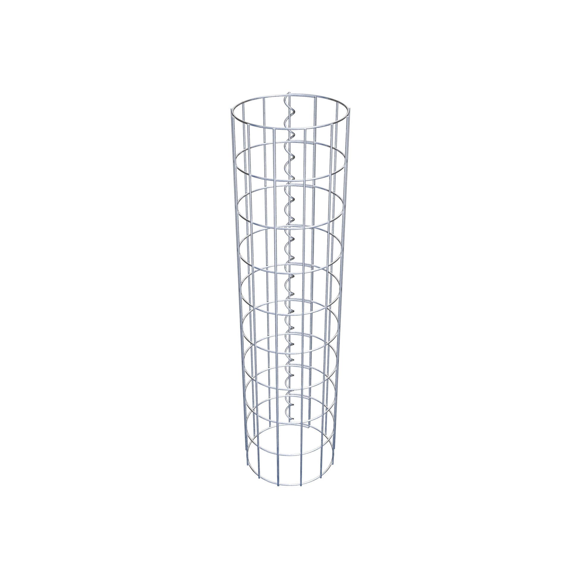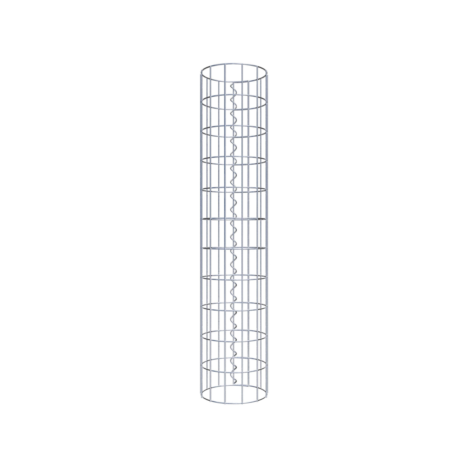 Der seitliche Verschluss erfolgt an der einzigen Überlappungsstelle des Gitters mit einer Spirale, die einfach eingedreht und zusammengedrückt wird. So entsteht eine saubere, sichere und dauerhafte Verbindung. Alternativ kann die Gabionensäule auch mit Klammern verschlossen werden, die separat erhältlich sind. Die Säulen sind nach oben und unten offen – ein Bodengitter oder Deckel ist nicht erforderlich und daher nicht im Lieferumfang enthalten.