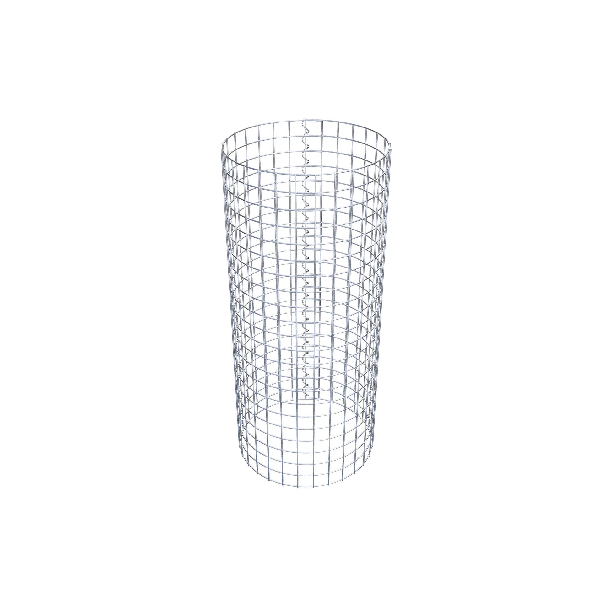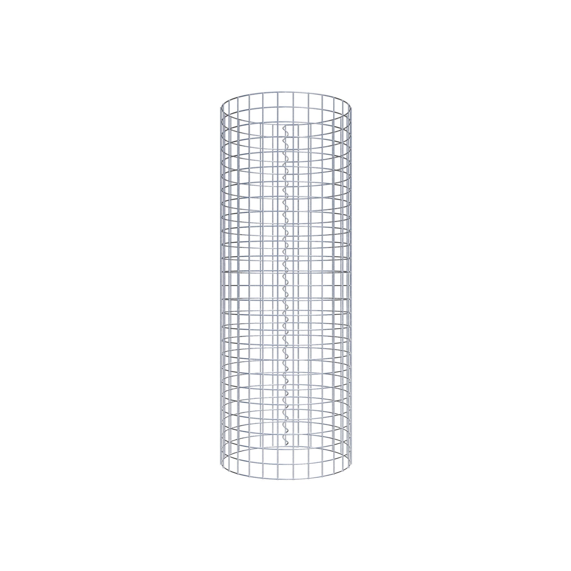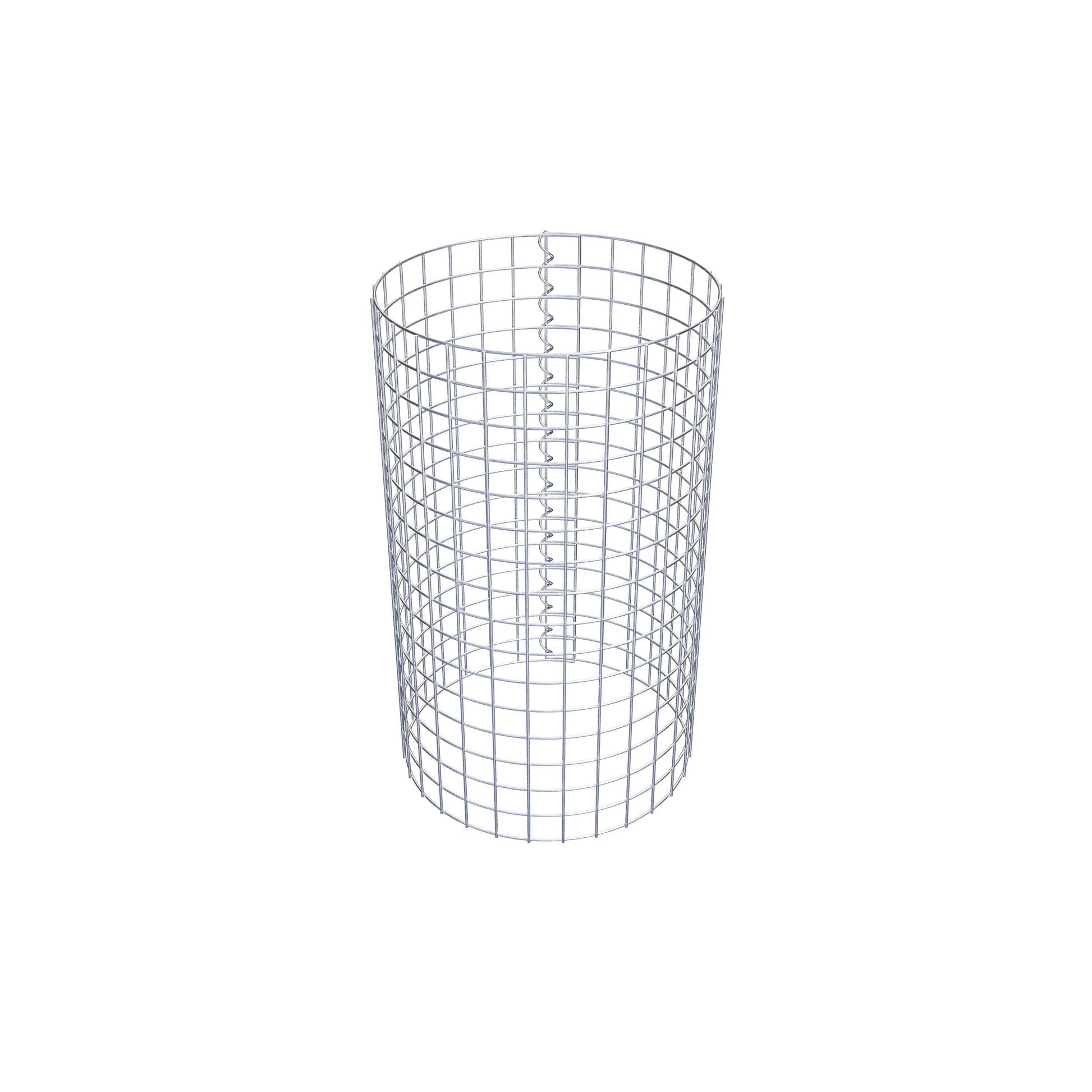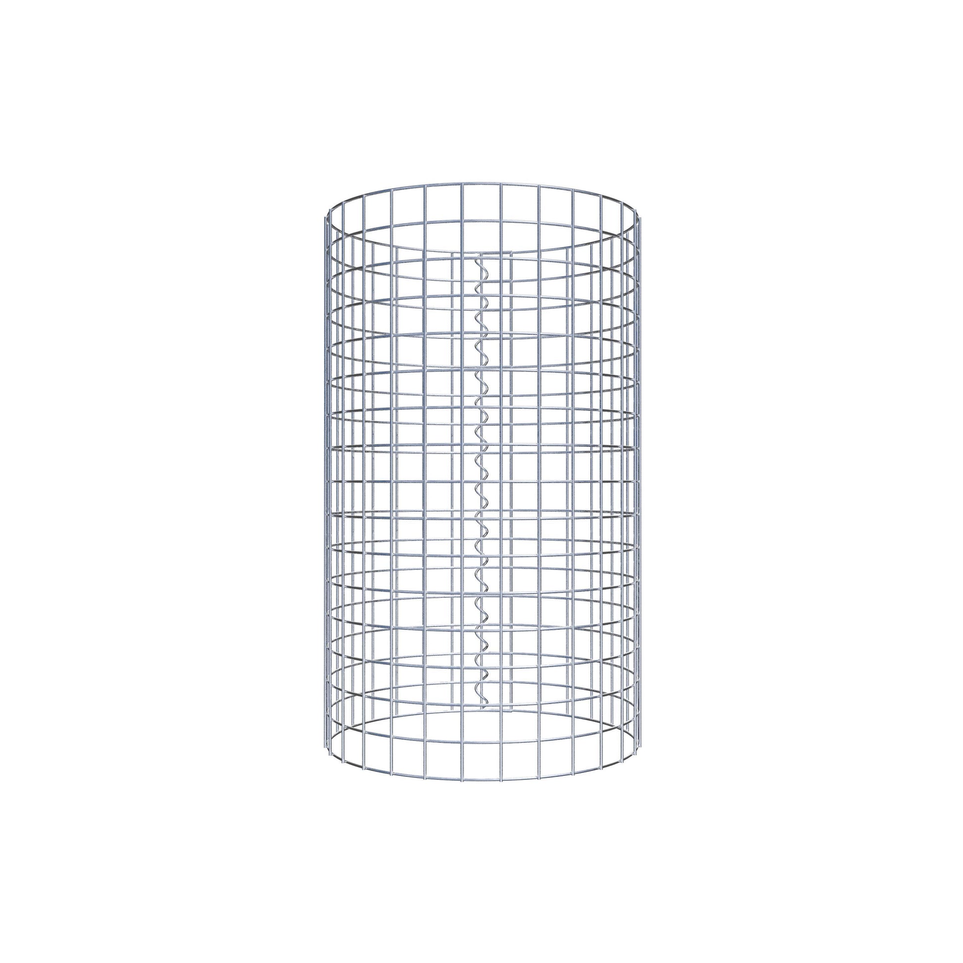 Der seitliche Verschluss erfolgt an der einzigen Überlappungsstelle des Gitters mit einer Spirale, die einfach eingedreht und zusammengedrückt wird. So entsteht eine saubere, sichere und dauerhafte Verbindung. Alternativ kann die Gabionensäule auch mit Klammern verschlossen werden, die separat erhältlich sind. Die Säulen sind nach oben und unten offen – ein Bodengitter oder Deckel ist nicht erforderlich und daher nicht im Lieferumfang enthalten.