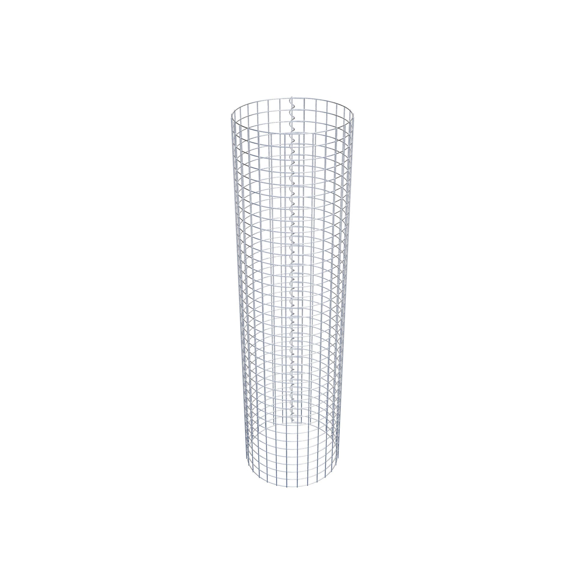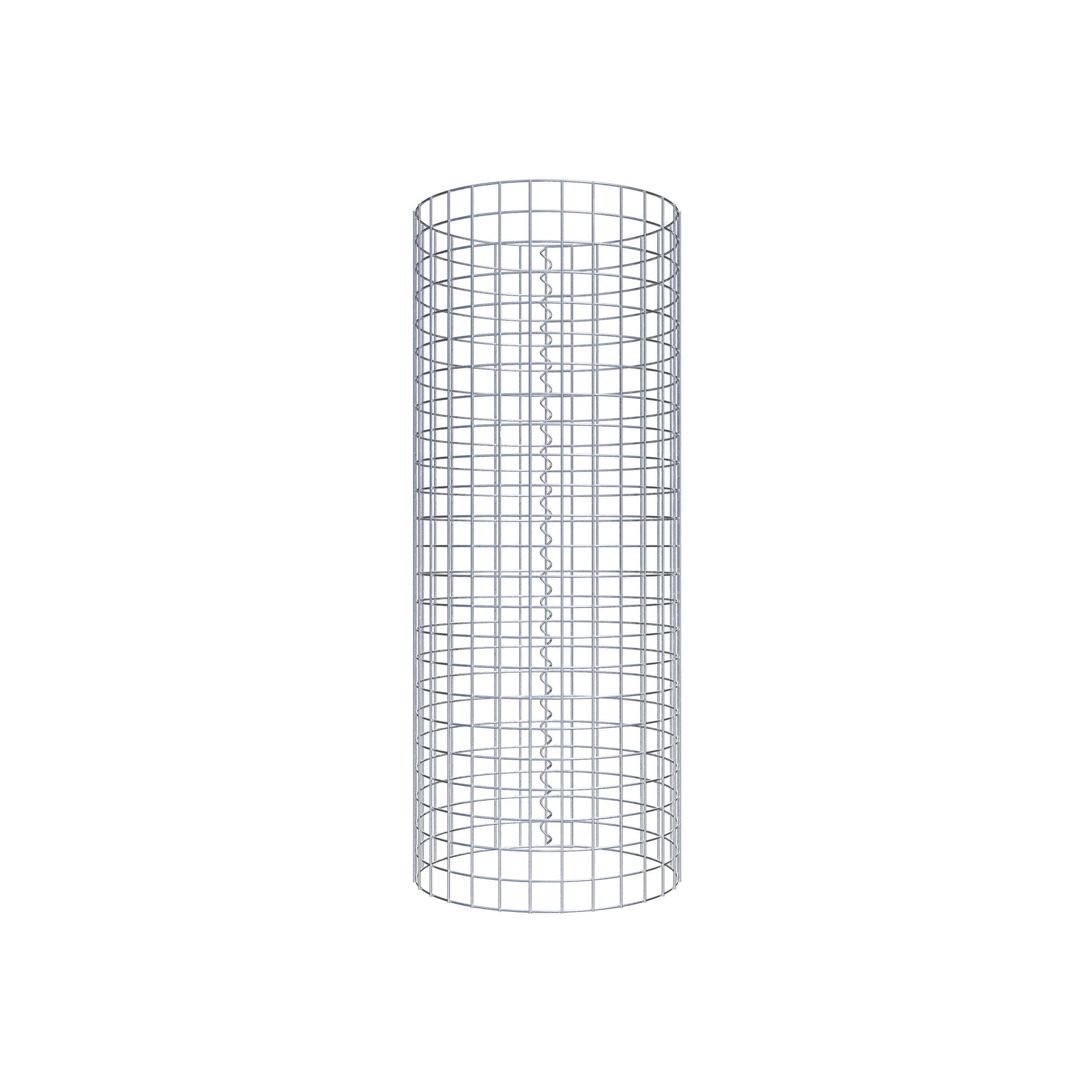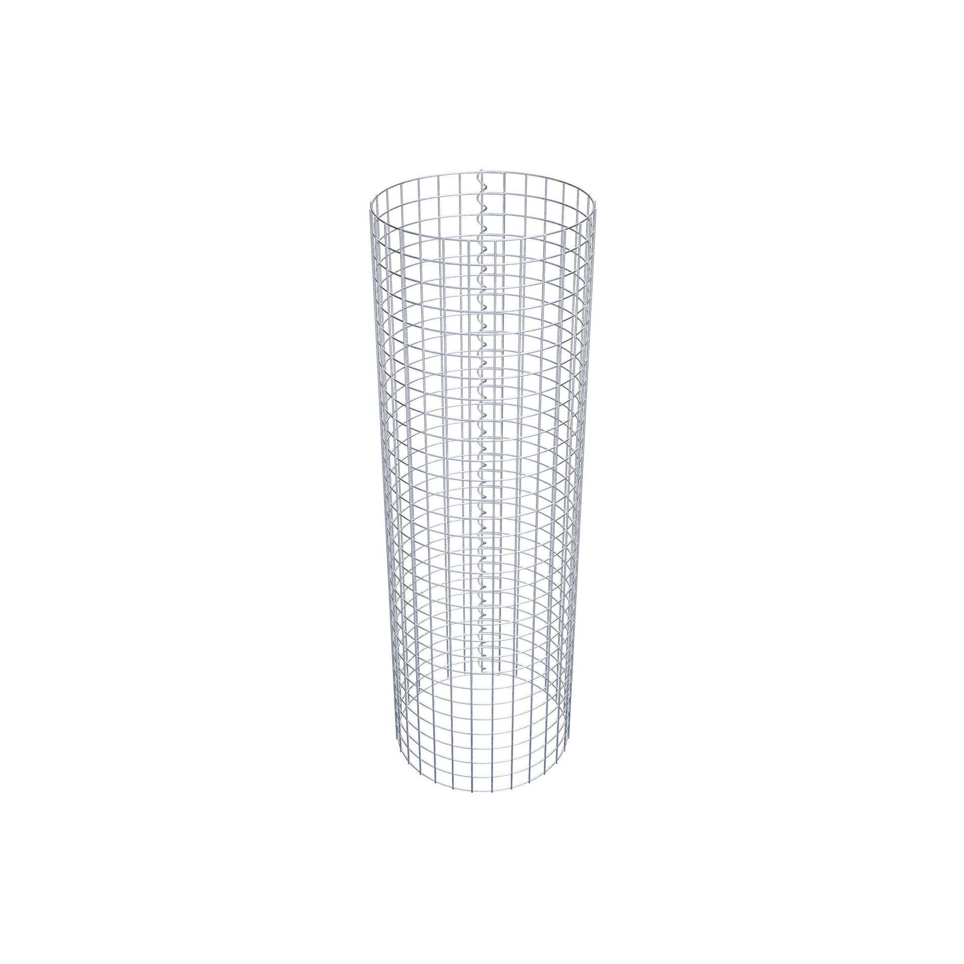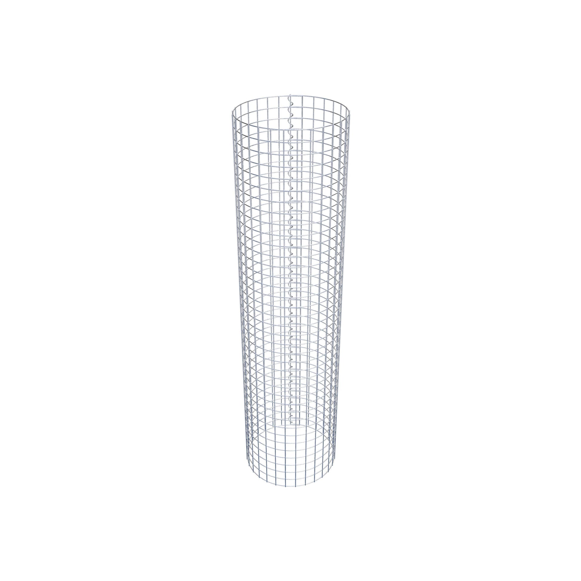 Der seitliche Verschluss erfolgt an der einzigen Überlappungsstelle des Gitters mit einer Spirale, die einfach eingedreht und zusammengedrückt wird. So entsteht eine saubere, sichere und dauerhafte Verbindung. Alternativ kann die Gabionensäule auch mit Klammern verschlossen werden, die separat erhältlich sind. Die Säulen sind nach oben und unten offen – ein Bodengitter oder Deckel ist nicht erforderlich und daher nicht im Lieferumfang enthalten.