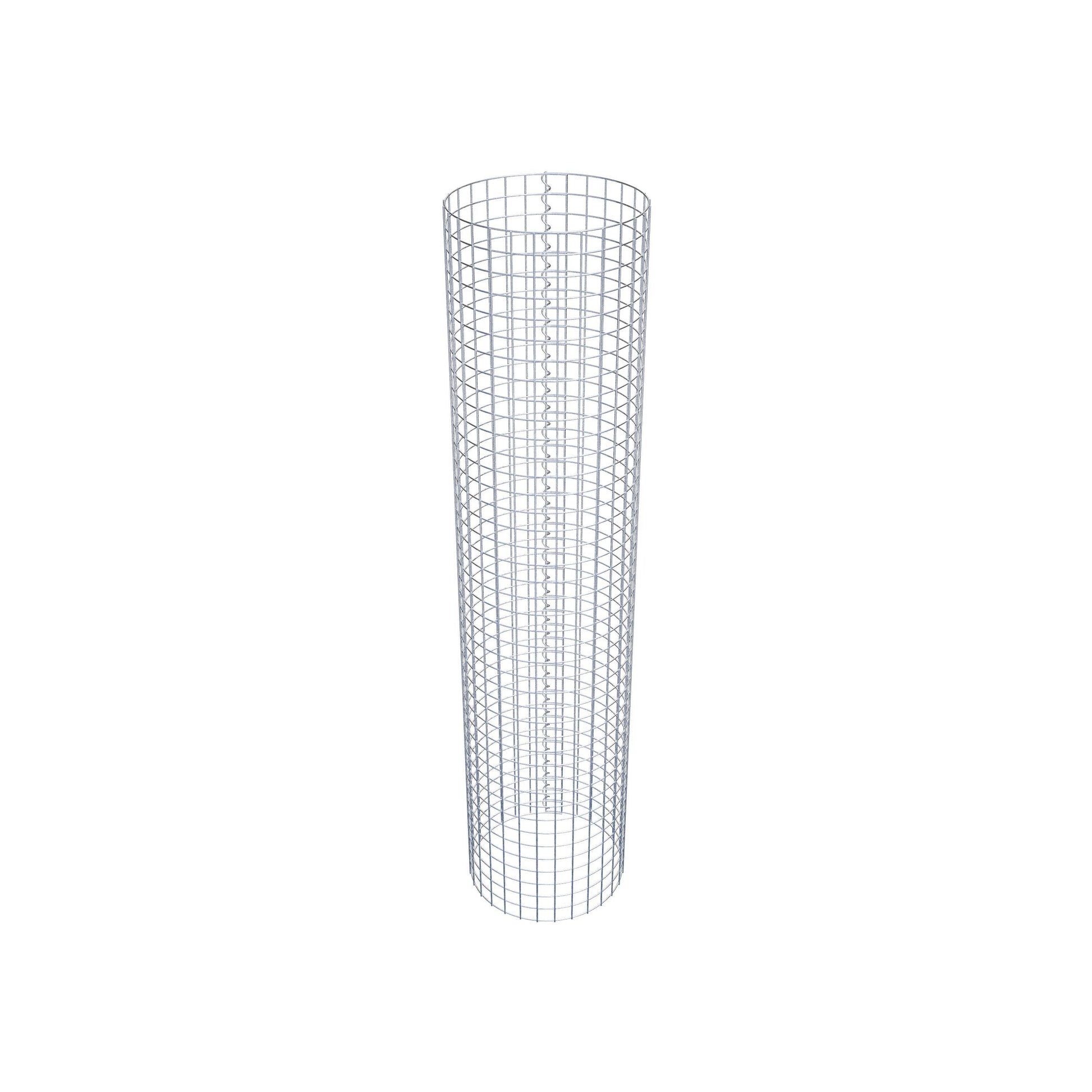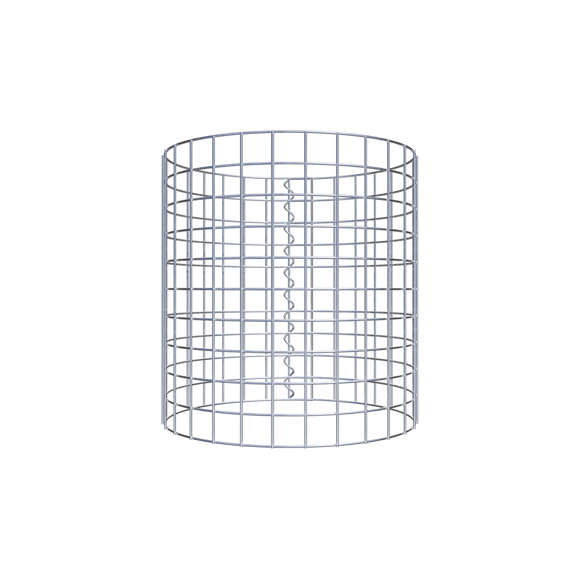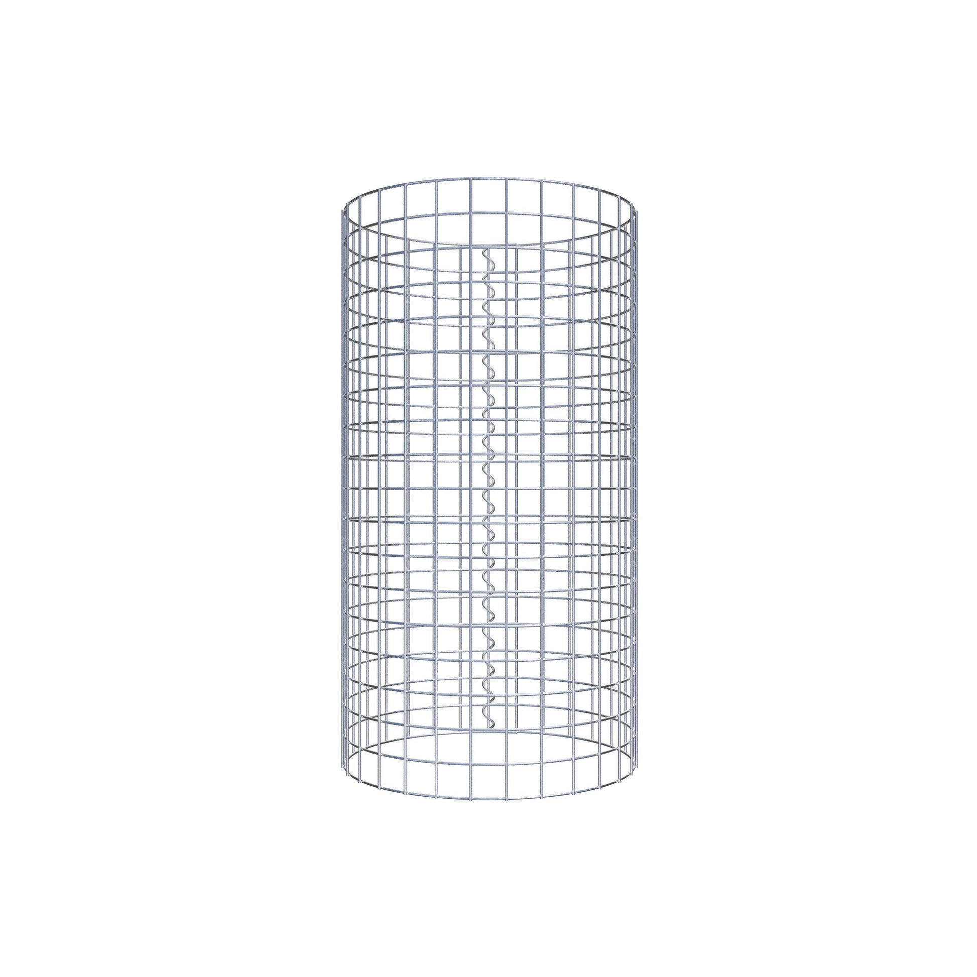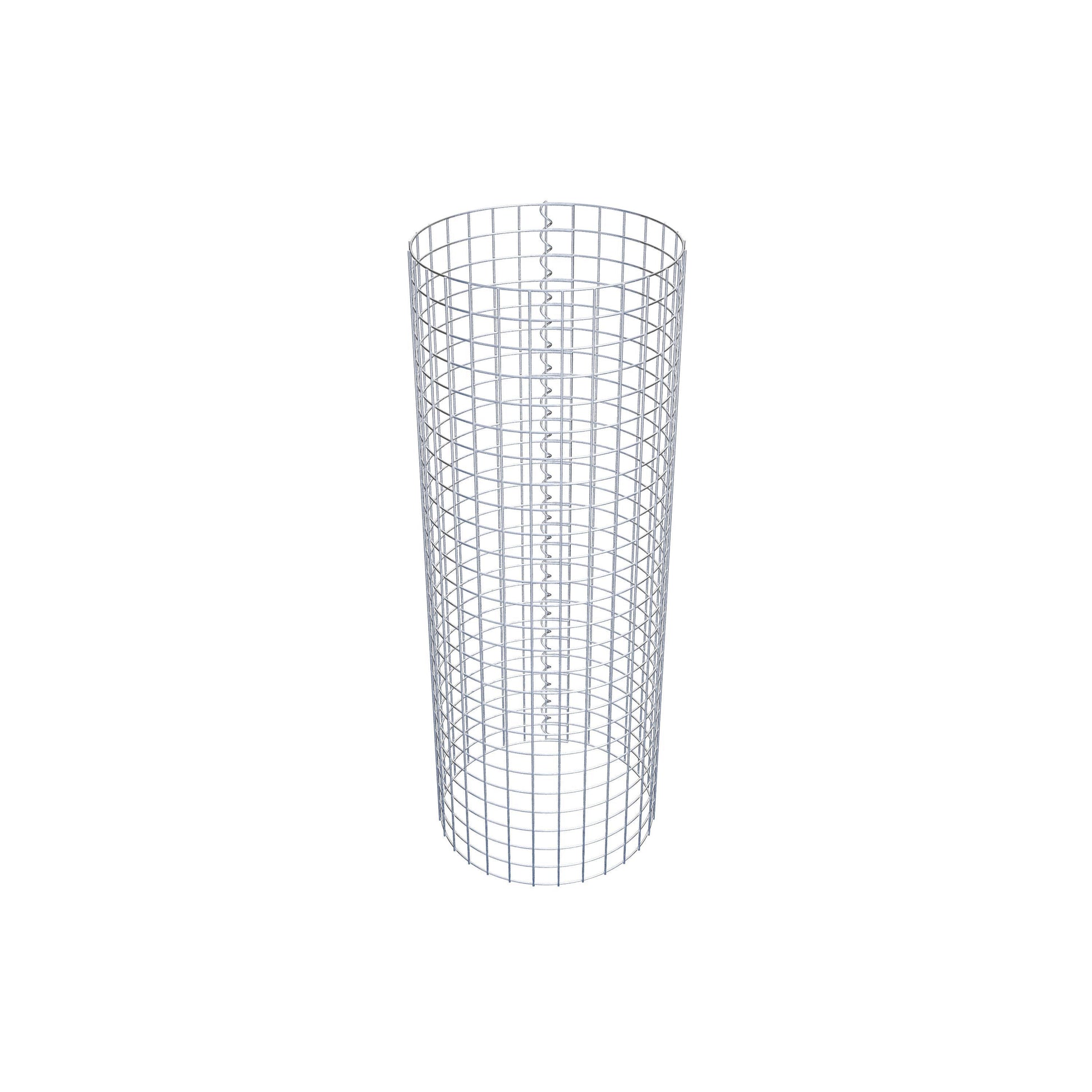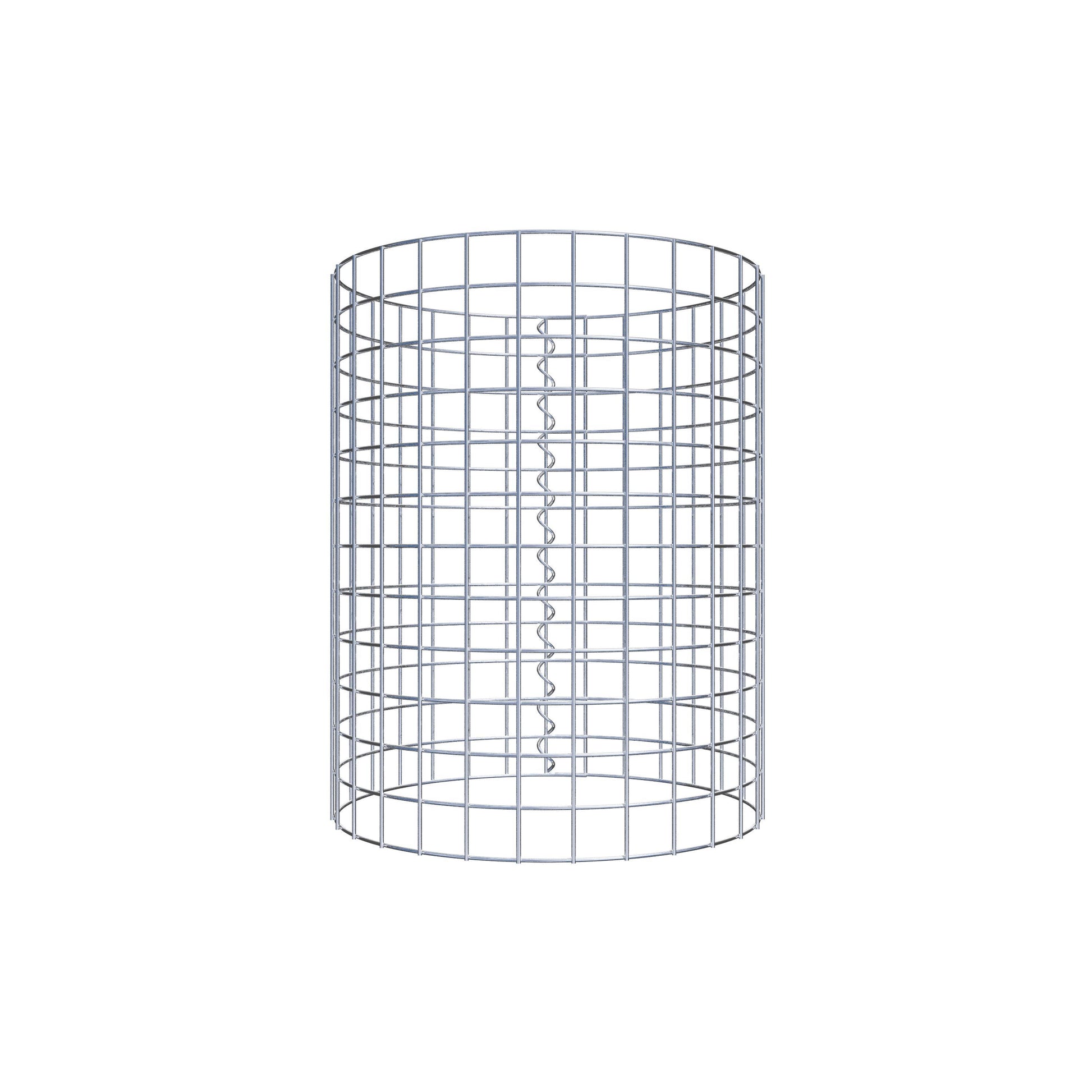 Der seitliche Verschluss erfolgt an der einzigen Überlappungsstelle des Gitters mit einer Spirale, die einfach eingedreht und zusammengedrückt wird. So entsteht eine saubere, sichere und dauerhafte Verbindung. Alternativ kann die Gabionensäule auch mit Klammern verschlossen werden, die separat erhältlich sind. Die Säulen sind nach oben und unten offen – ein Bodengitter oder Deckel ist nicht erforderlich und daher nicht im Lieferumfang enthalten.