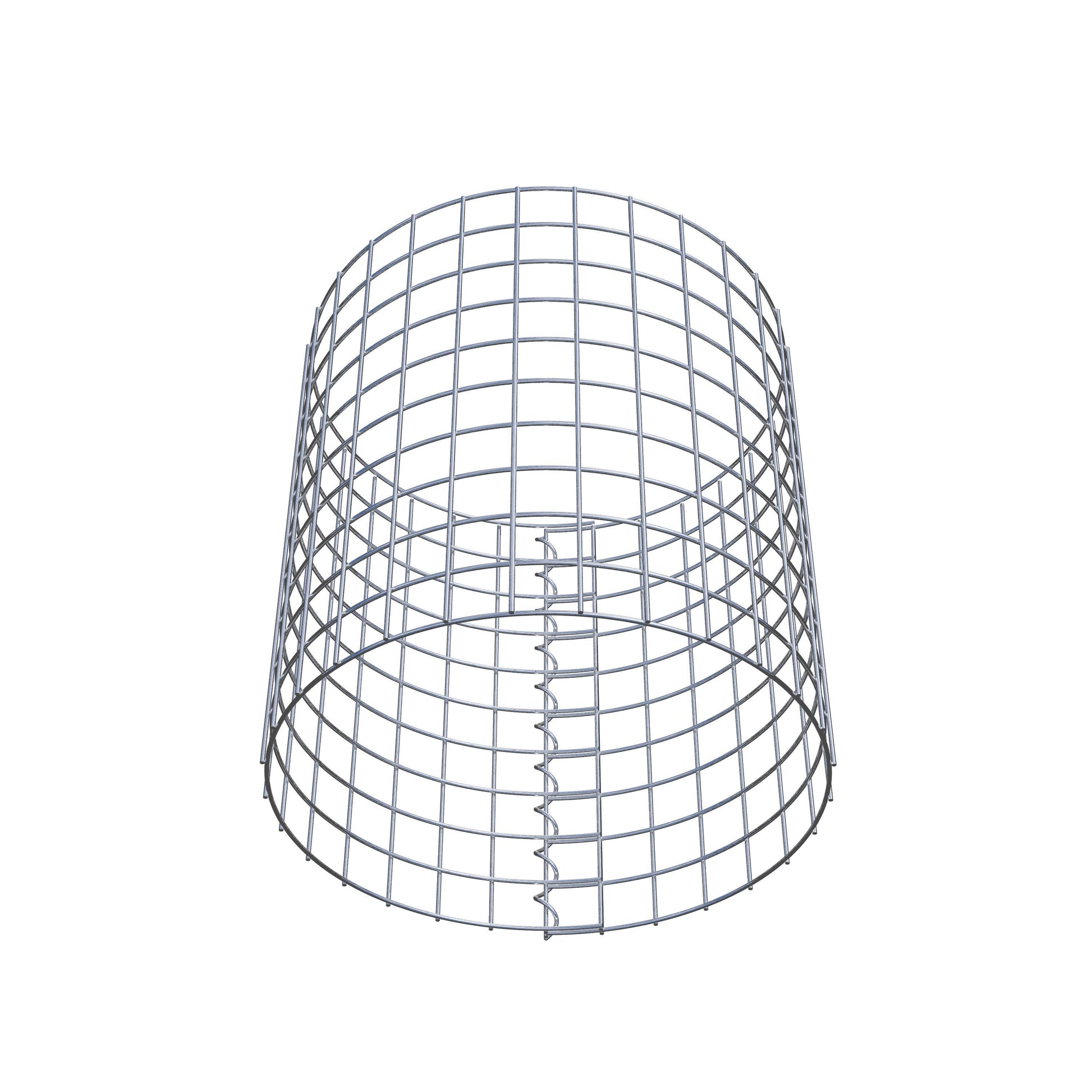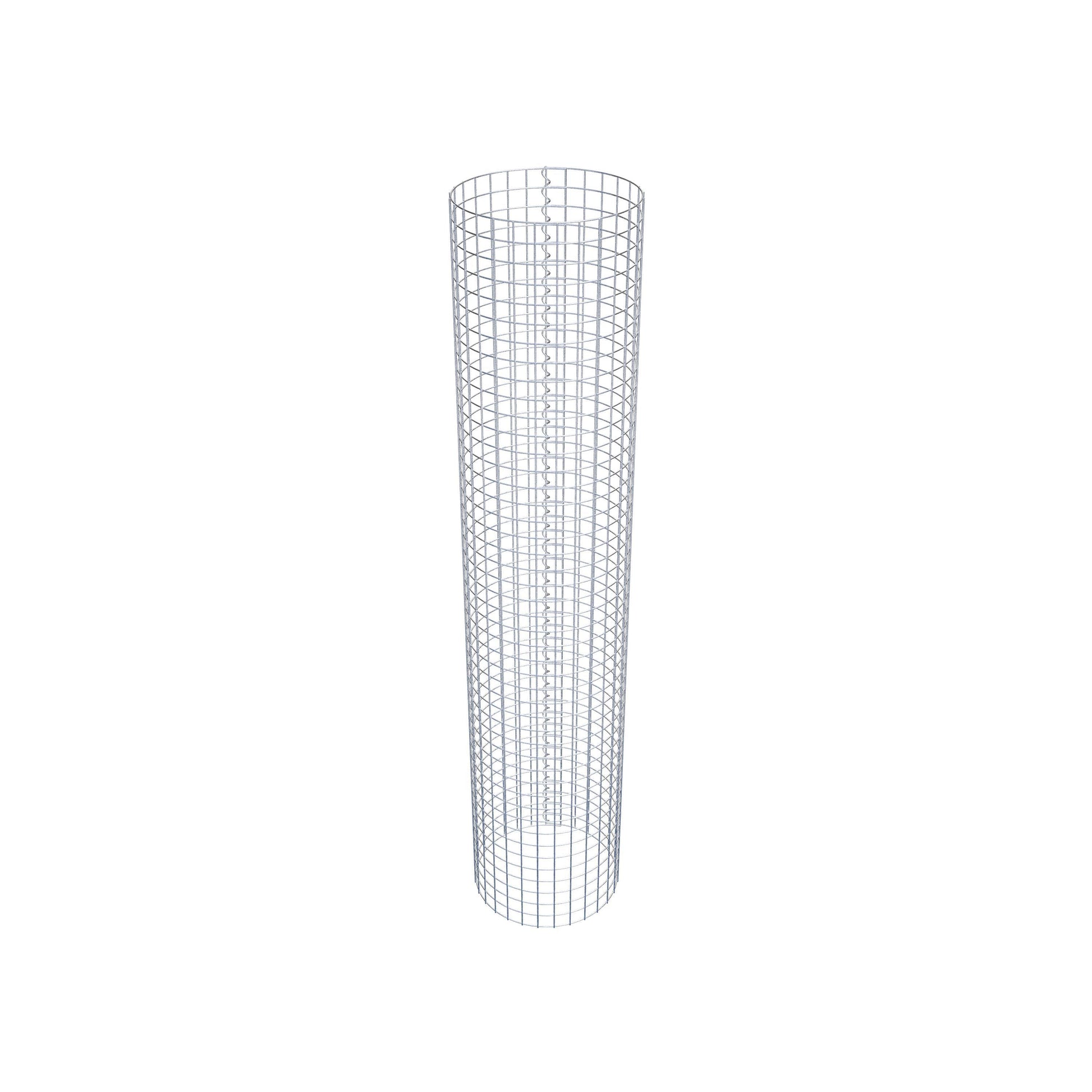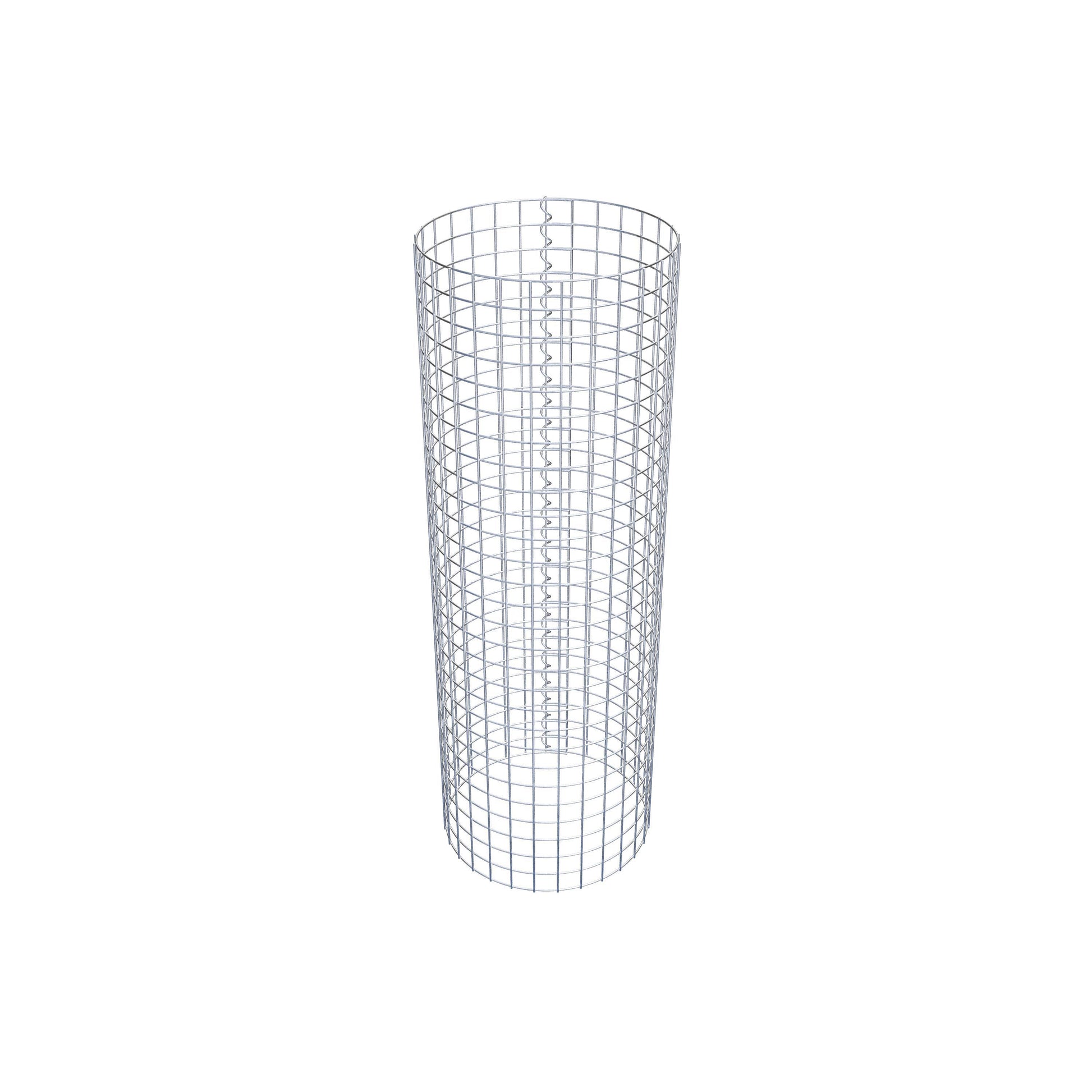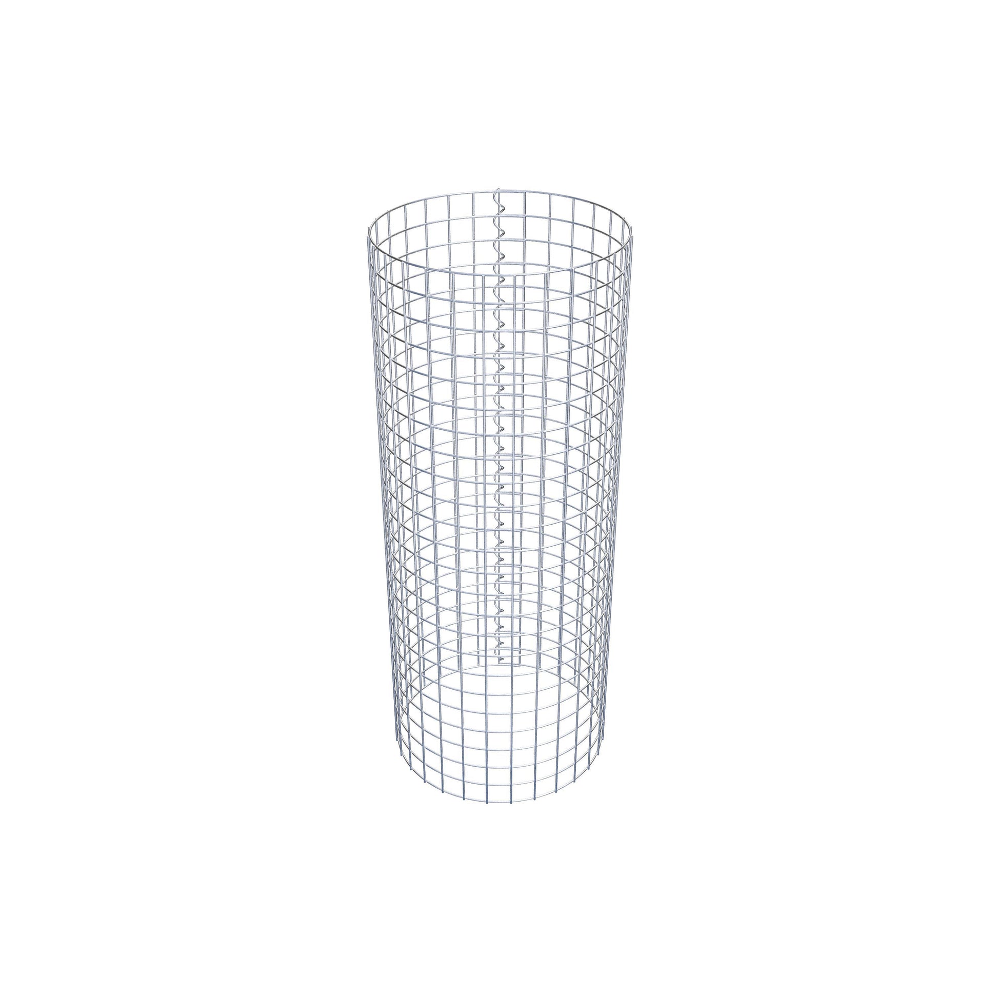 Der seitliche Verschluss erfolgt an der einzigen Überlappungsstelle des Gitters mit einer Spirale, die einfach eingedreht und zusammengedrückt wird. So entsteht eine saubere, sichere und dauerhafte Verbindung. Alternativ kann die Gabionensäule auch mit Klammern verschlossen werden, die separat erhältlich sind. Die Säulen sind nach oben und unten offen – ein Bodengitter oder Deckel ist nicht erforderlich und daher nicht im Lieferumfang enthalten.