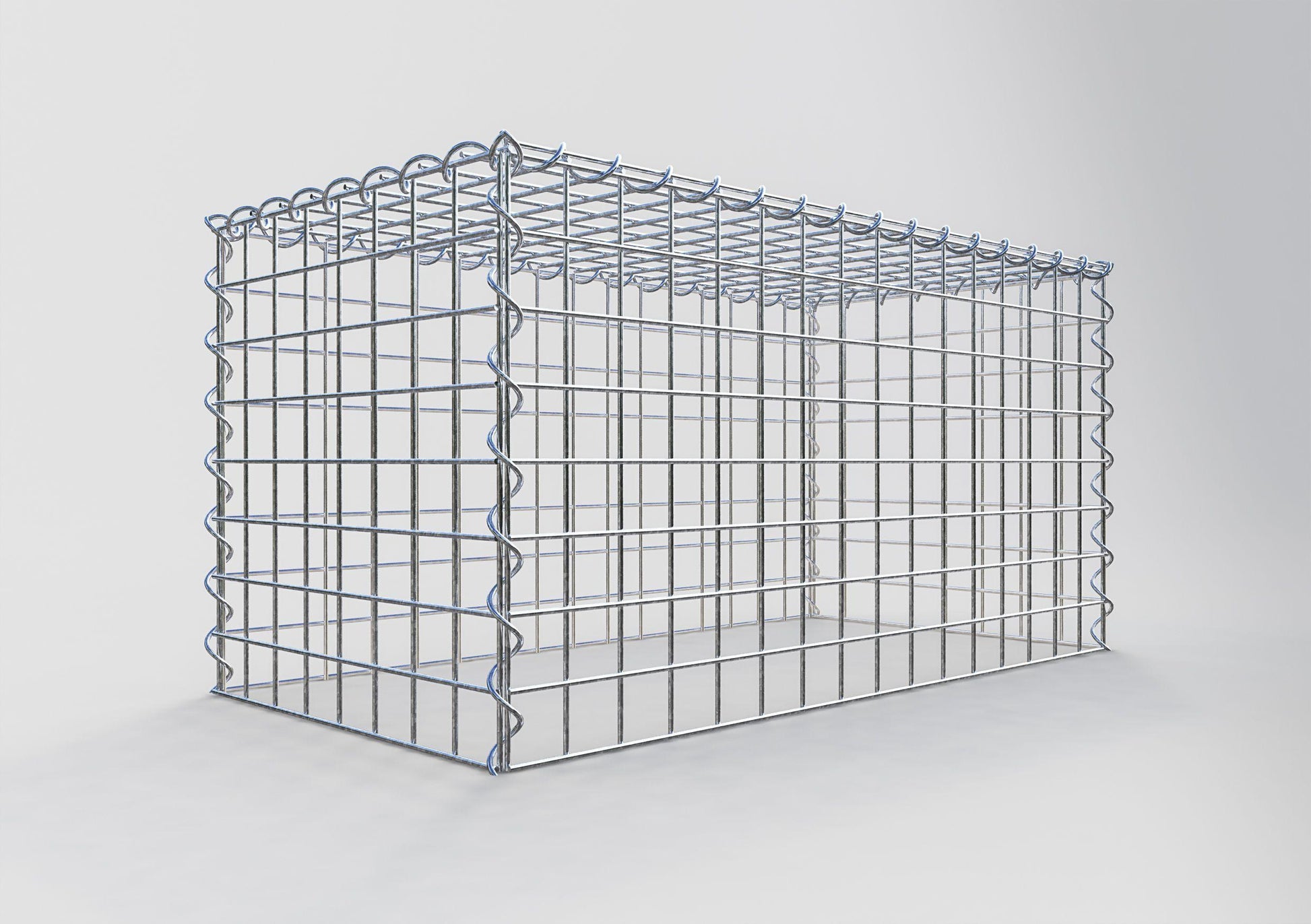 This gabion lacks a bottom grid. This allows your gabion to grow taller.