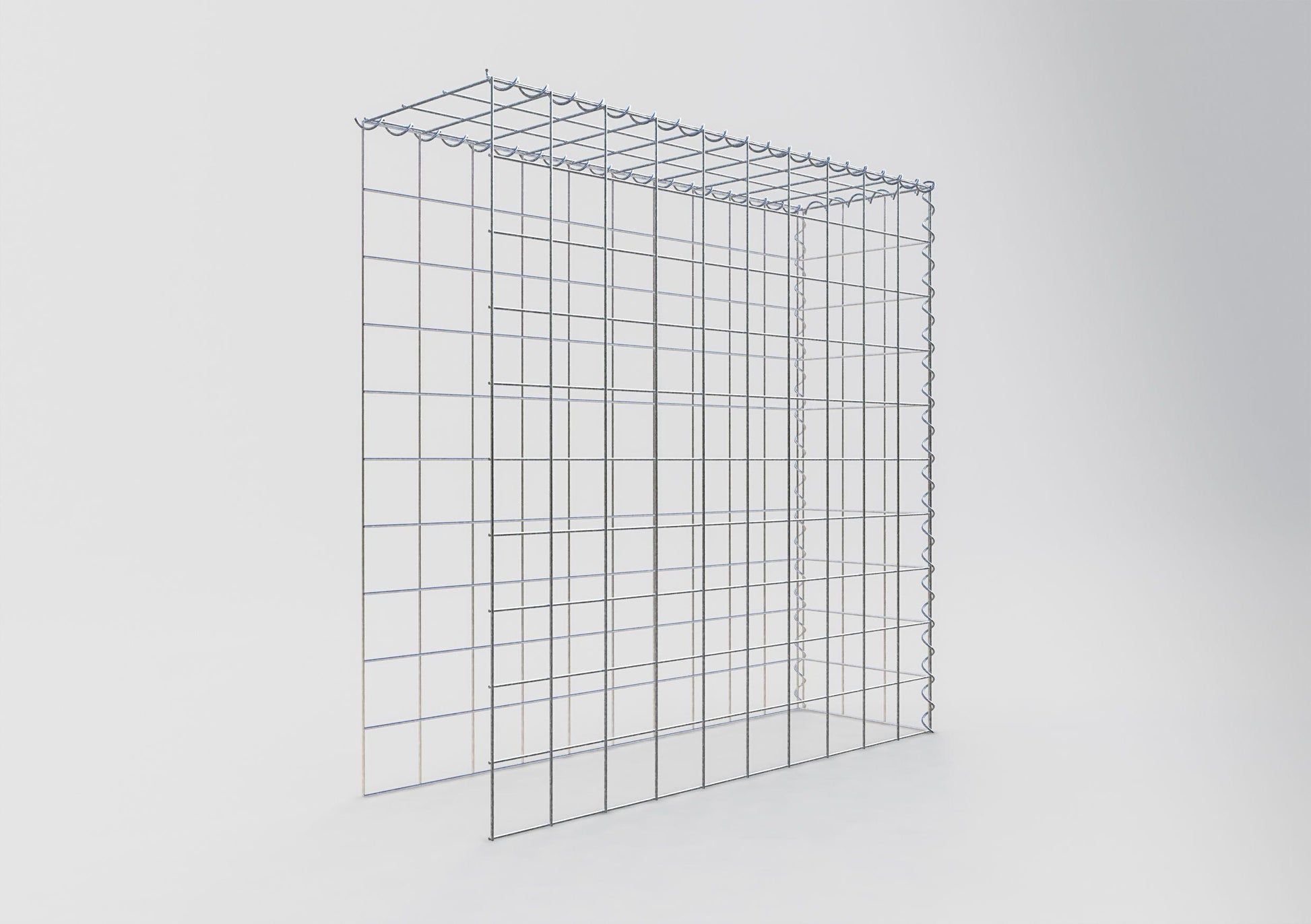 Este gavión no tiene rejilla frontal ni en la base. Esto permite que su gavión crezca tanto en longitud como en altura. Tenga en cuenta que el