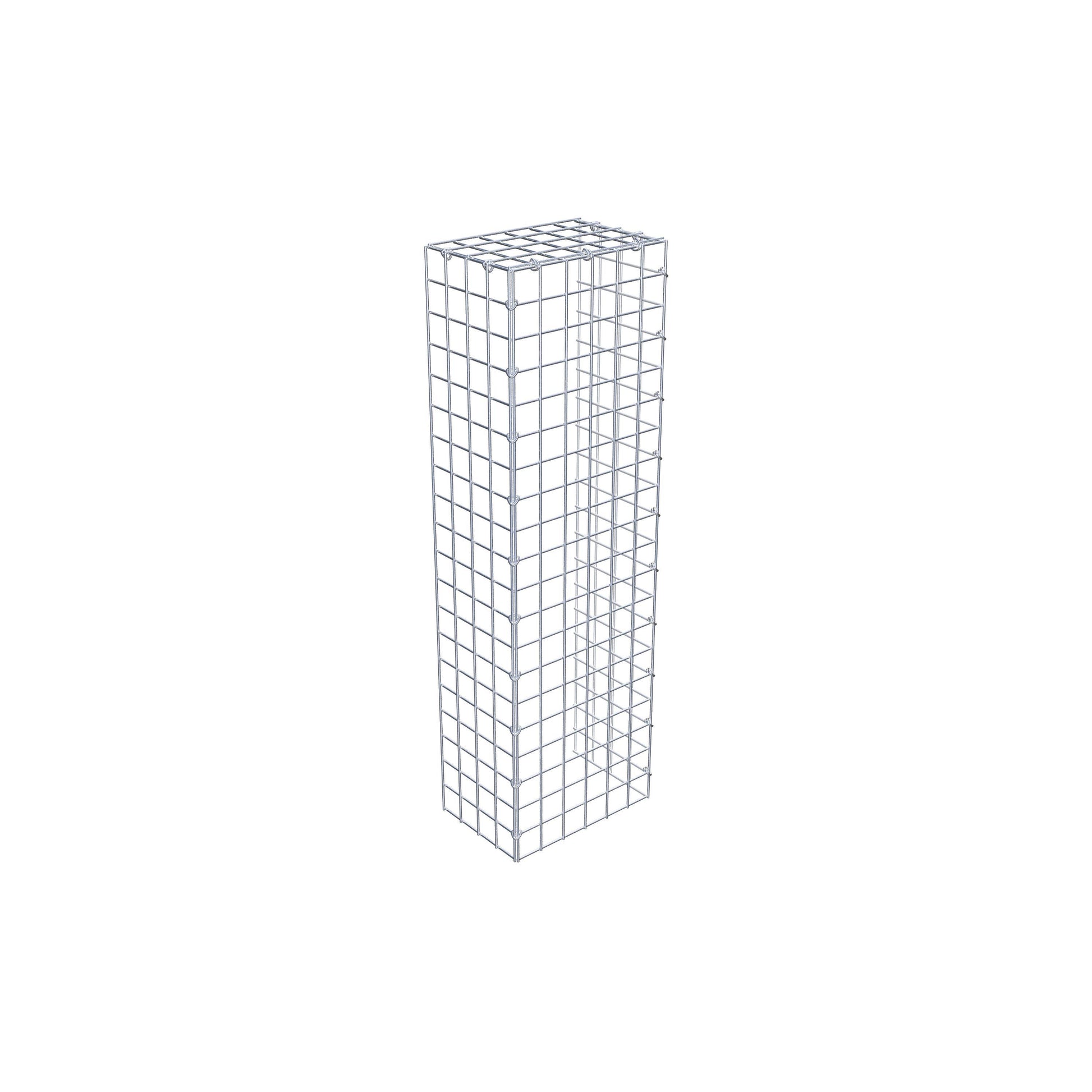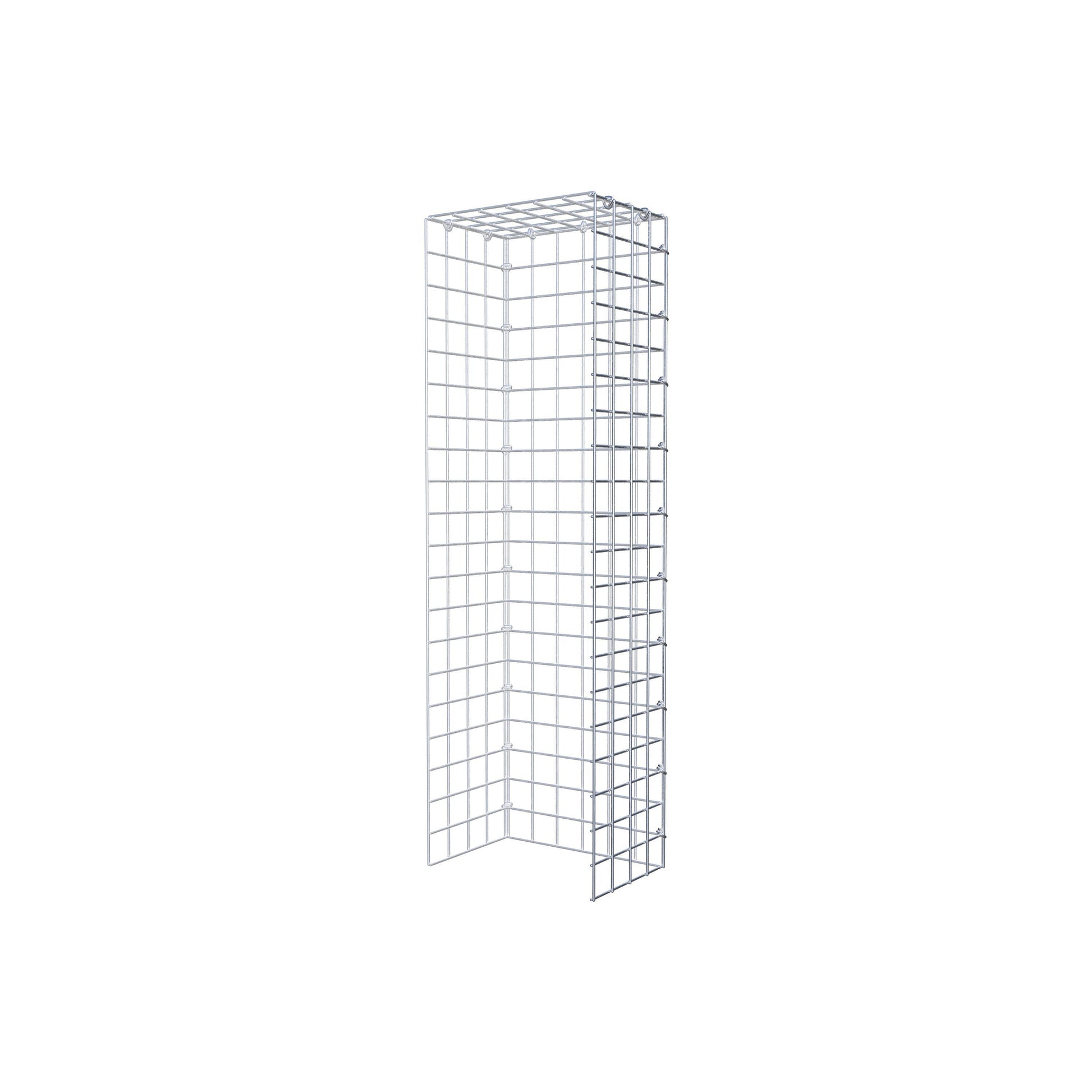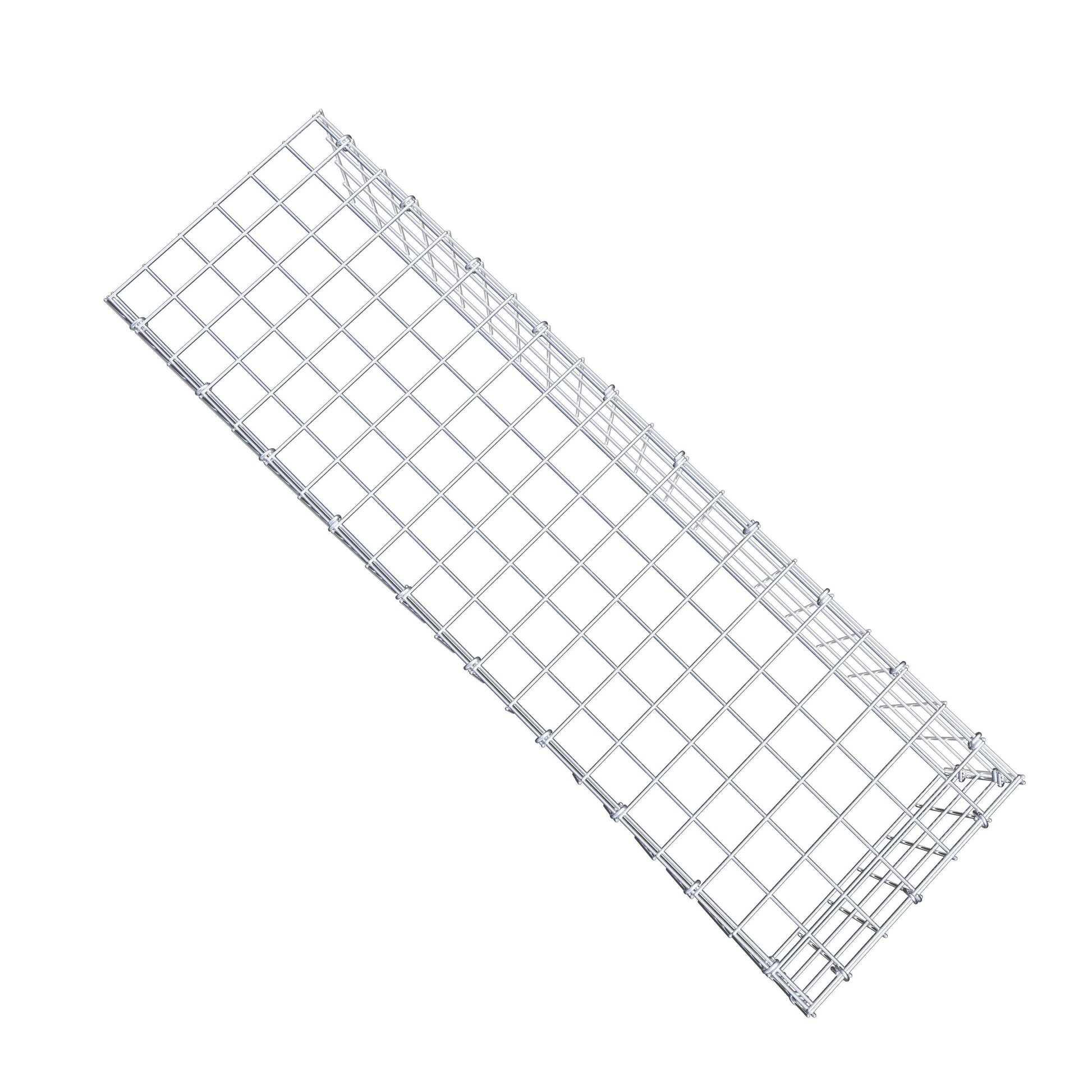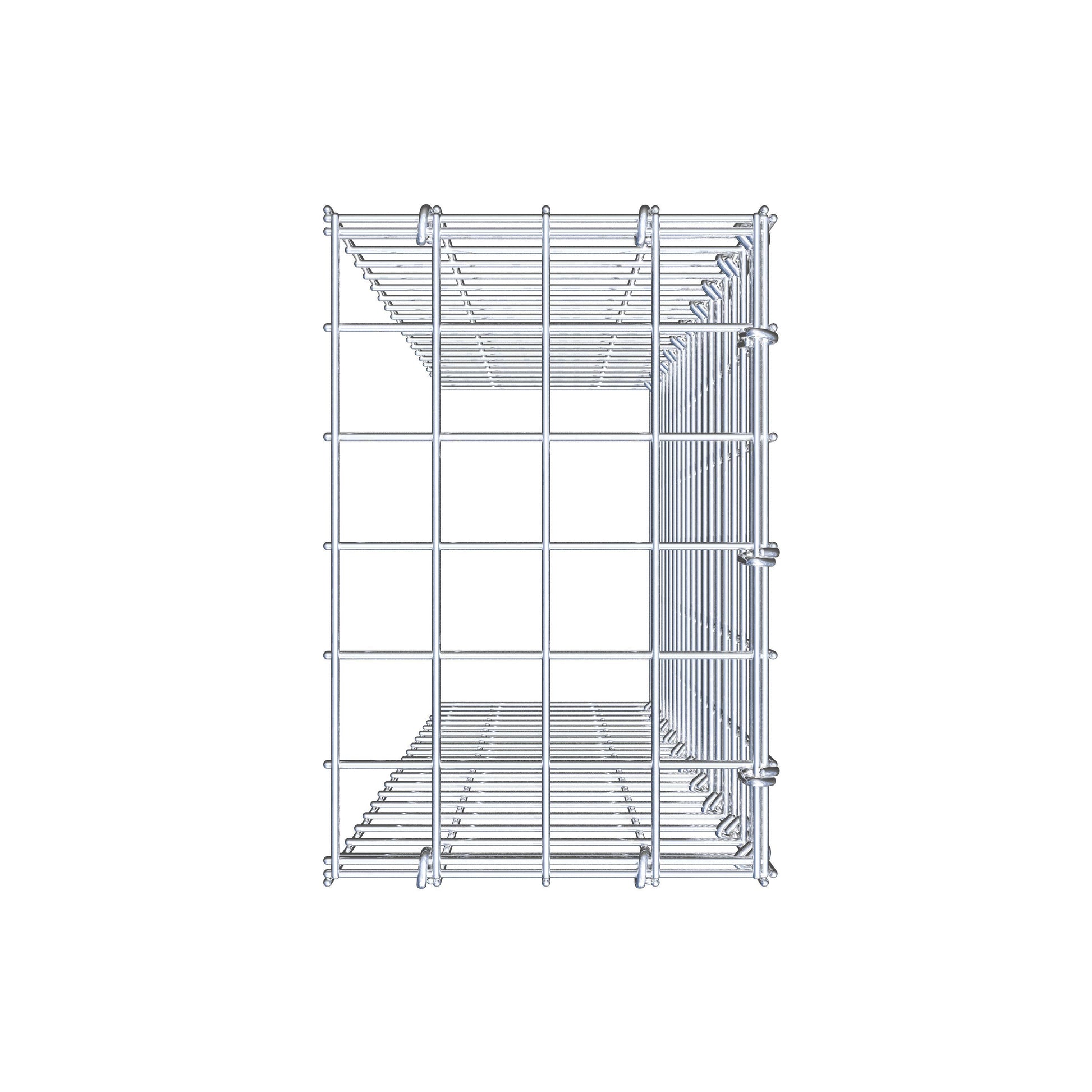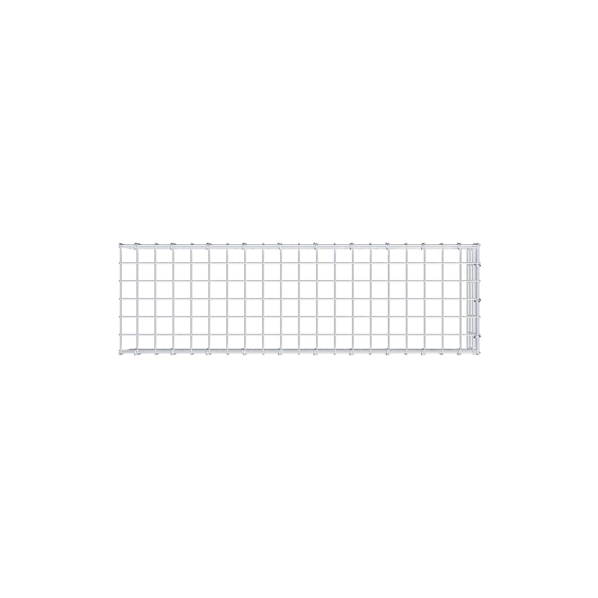 - Remarque : pas de propre grille de fond ni de grille frontale - la liaison se fait par la grille du couvercle et la fermeture du gabion inférieur ainsi que par la fermeture du gabion latéral.