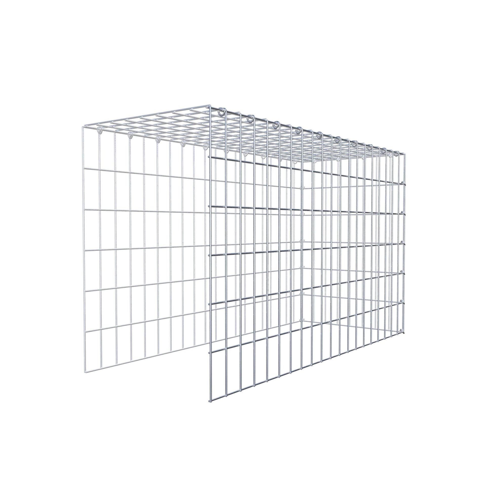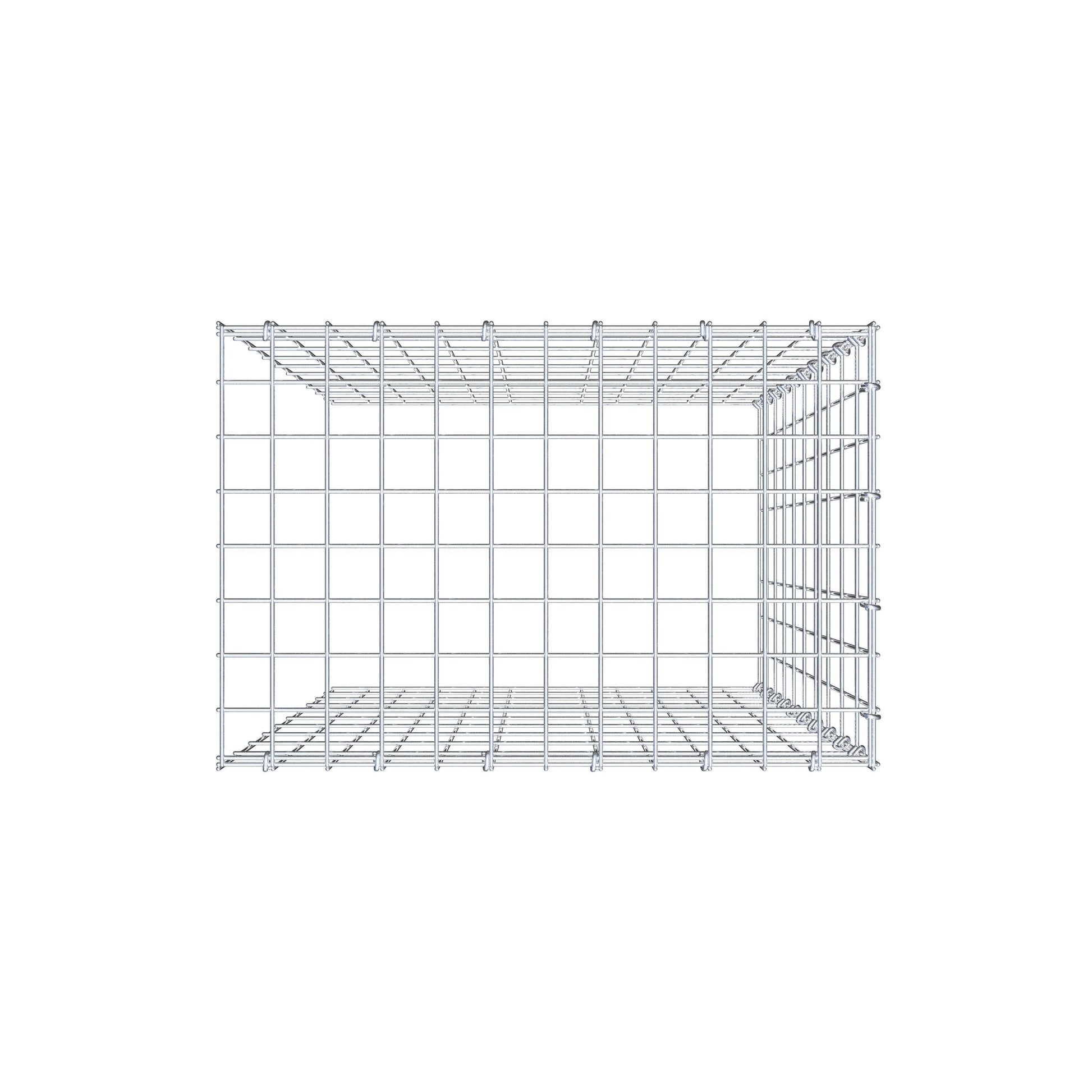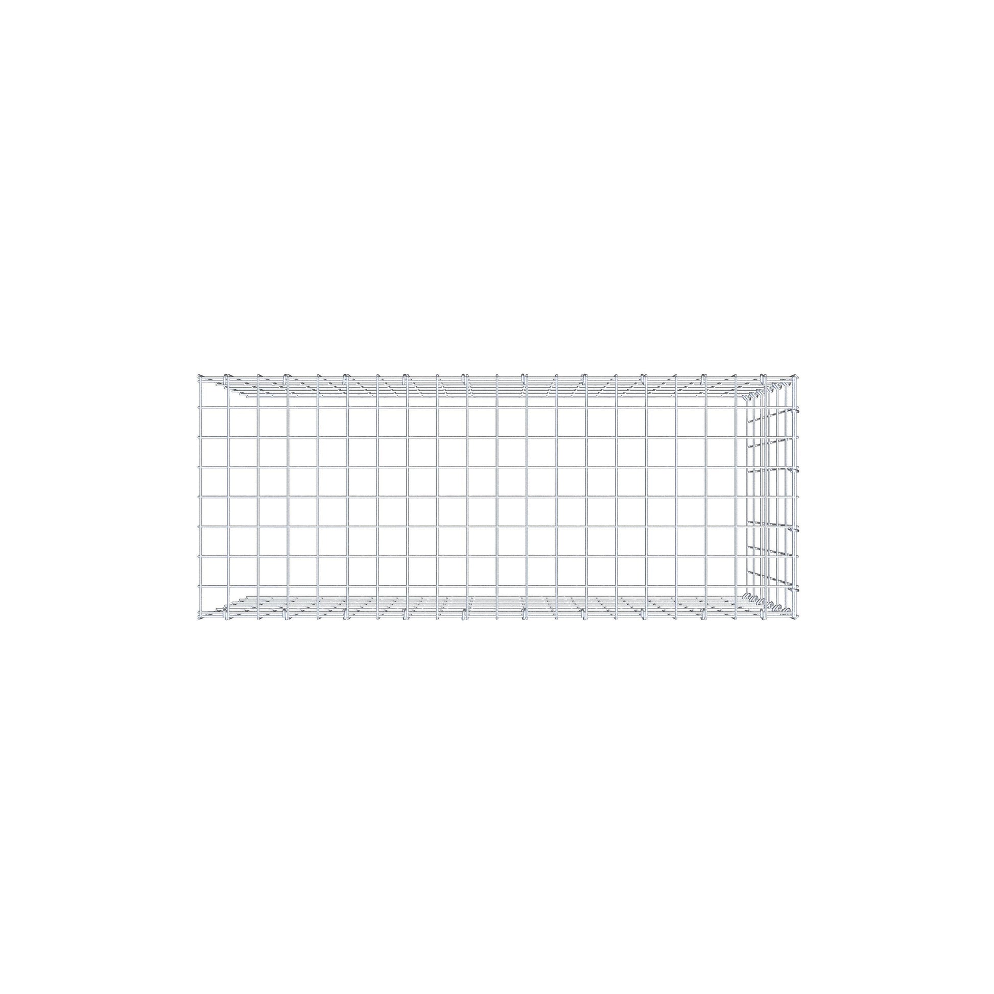 • Remarque : pas de propre grille de fond ni de grille frontale - la liaison se fait par la grille du couvercle et la fermeture du gabion inférieur ainsi que par la fermeture du gabion latéral.