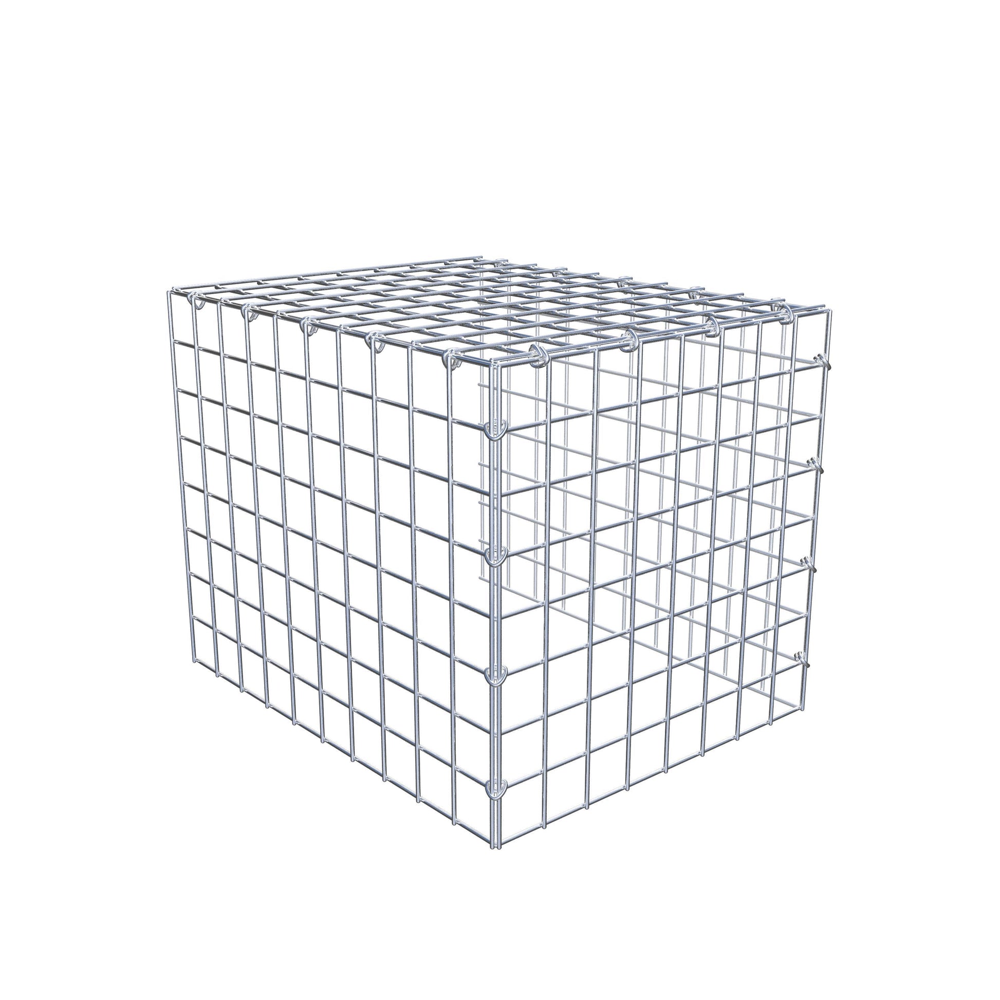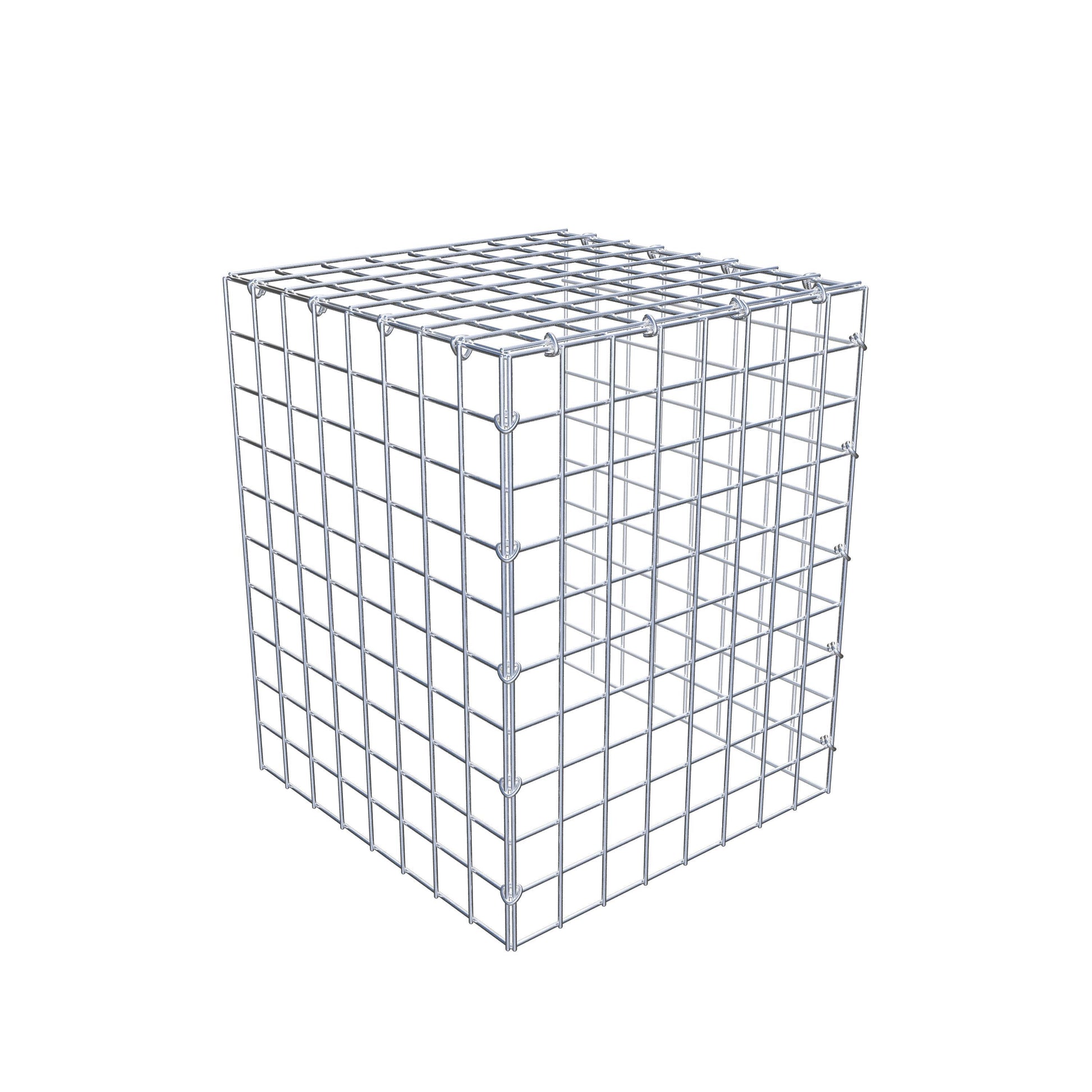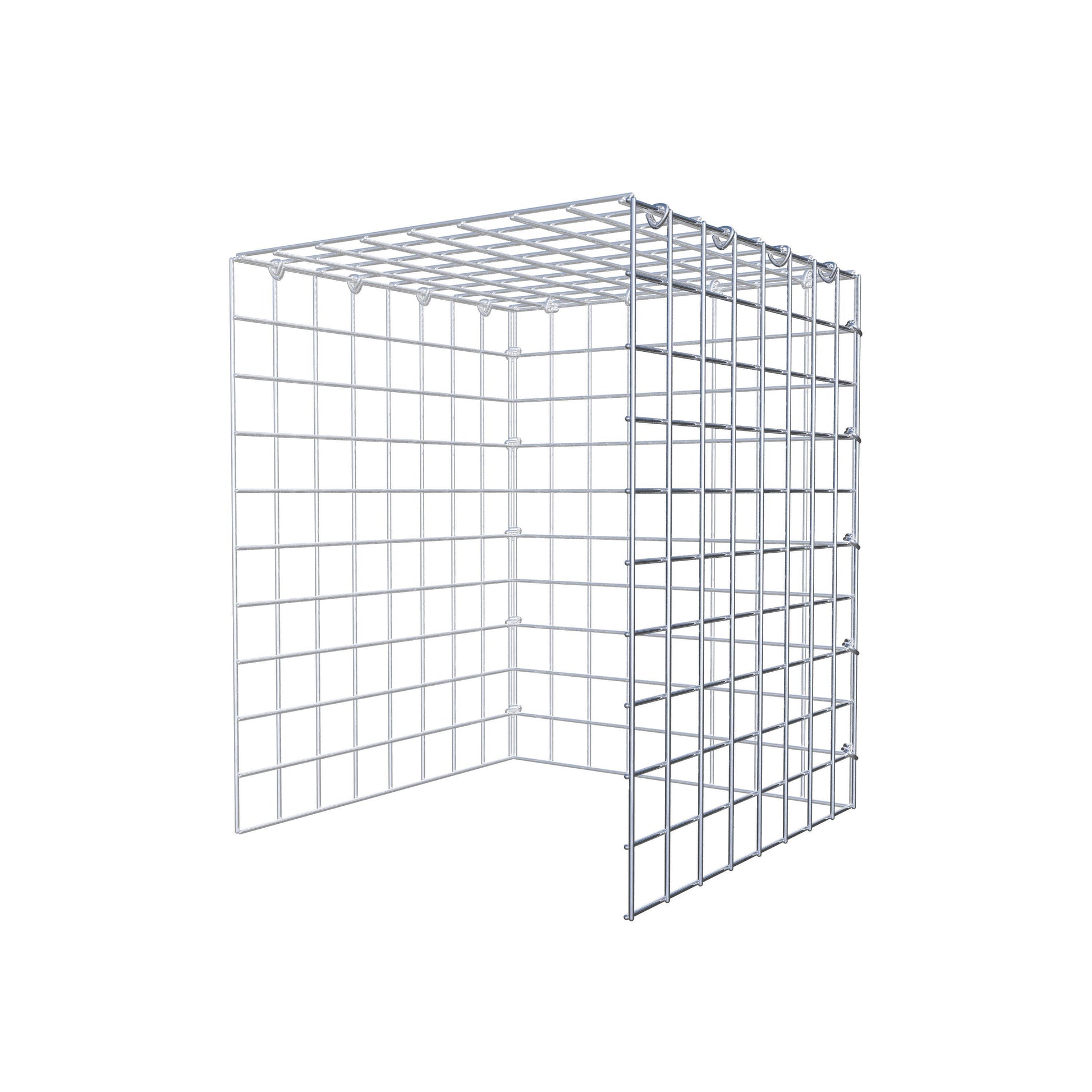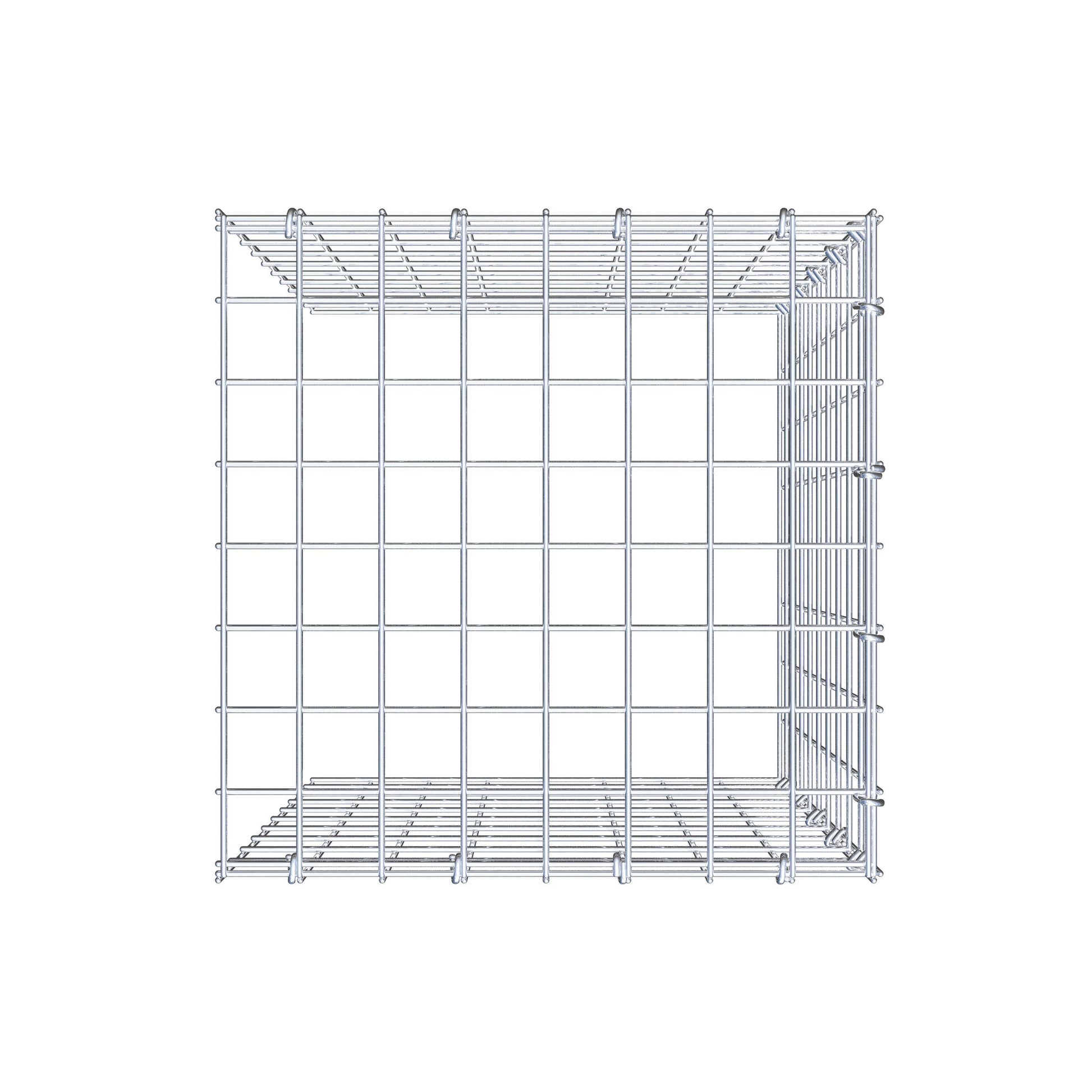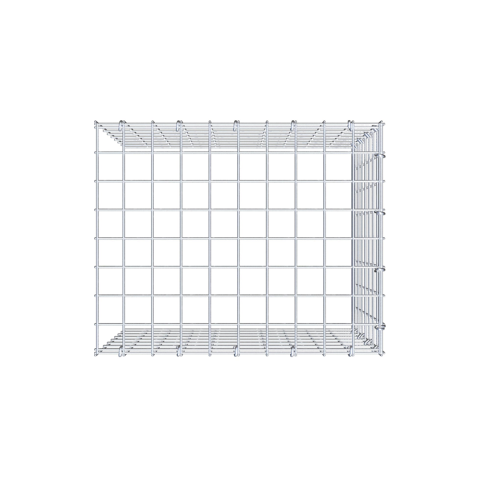 - Remarque : pas de propre grille de fond ni de grille frontale - la liaison se fait par la grille du couvercle et la fermeture du gabion inférieur ainsi que par la fermeture du gabion latéral.
