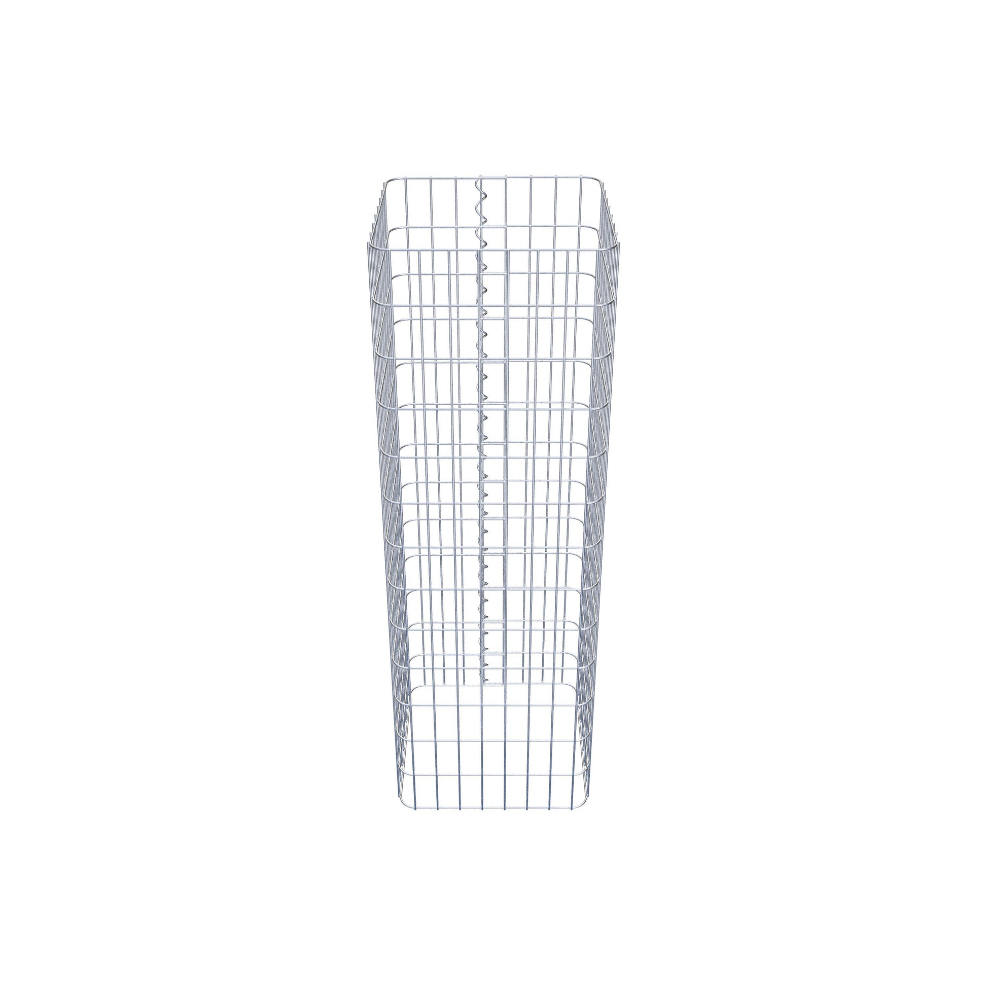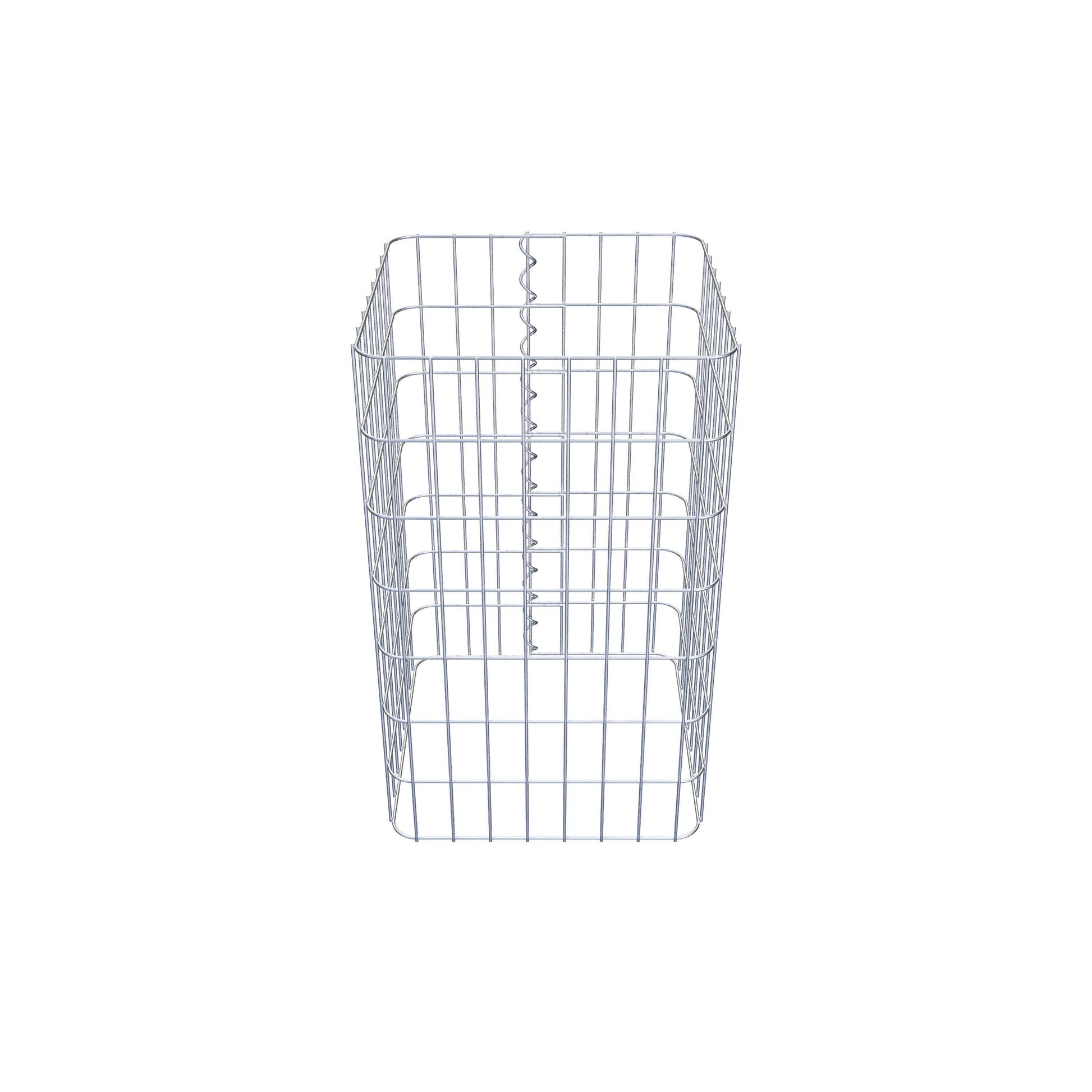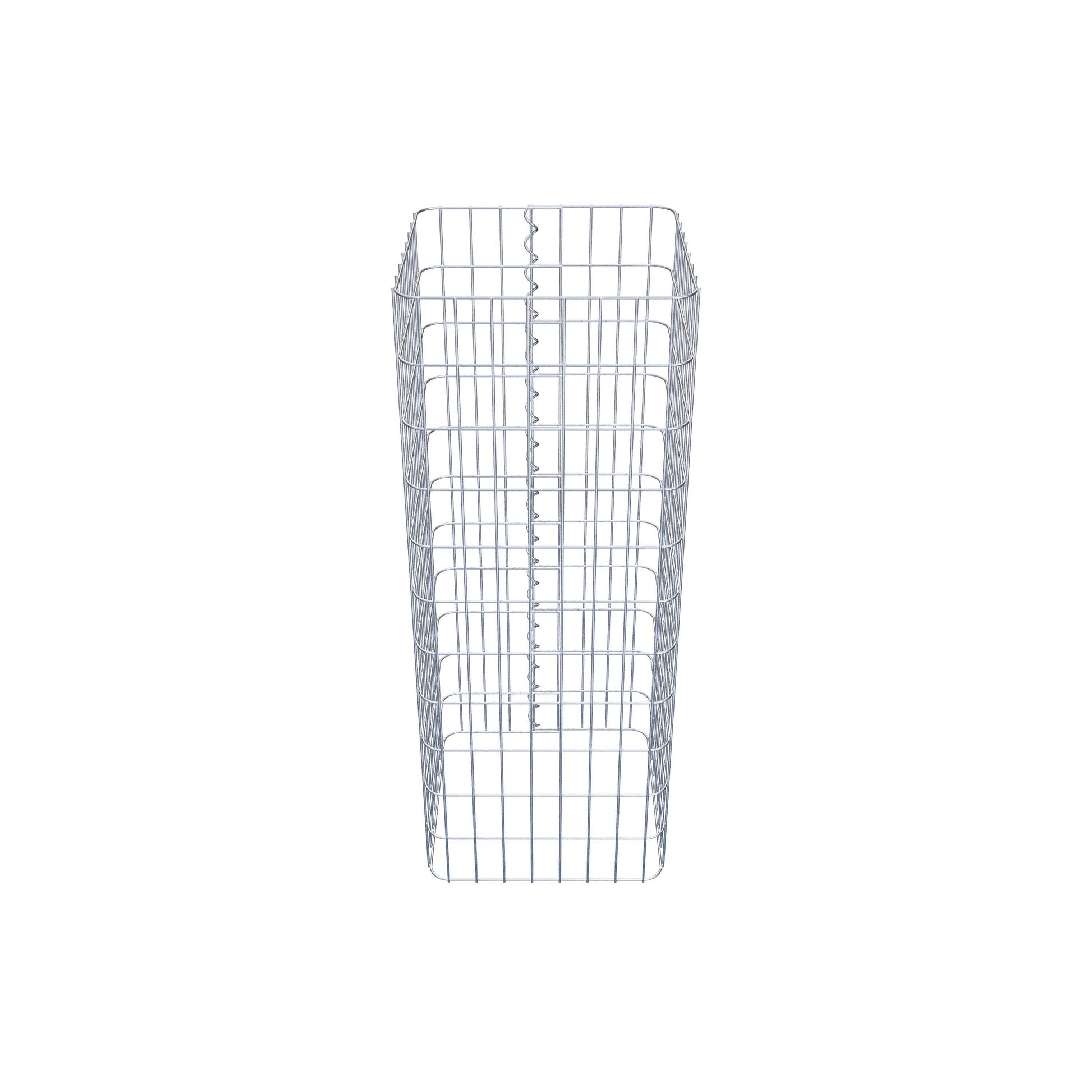 La fermeture latérale s'effectue au seul point de chevauchement du grillage avec une spirale qu'il suffit de visser et de comprimer. On obtient ainsi un assemblage propre, sûr et durable. Il est également possible de fermer la colonne de gabion à l'aide d'agrafes, disponibles séparément. Les colonnes sont ouvertes vers le haut et vers le bas - une grille de fond ou un couvercle n'est pas nécessaire et n'est donc pas inclus dans la livraison. Si nécessaire, un couvercle peut être acheté en supplément.