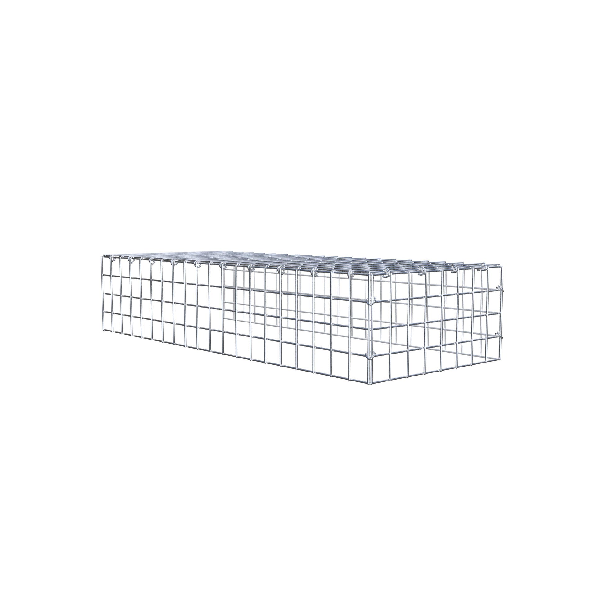 Este gabião não tem grade frontal e inferior. Isso permite que seu gabião cresça tanto em comprimento quanto em altura.