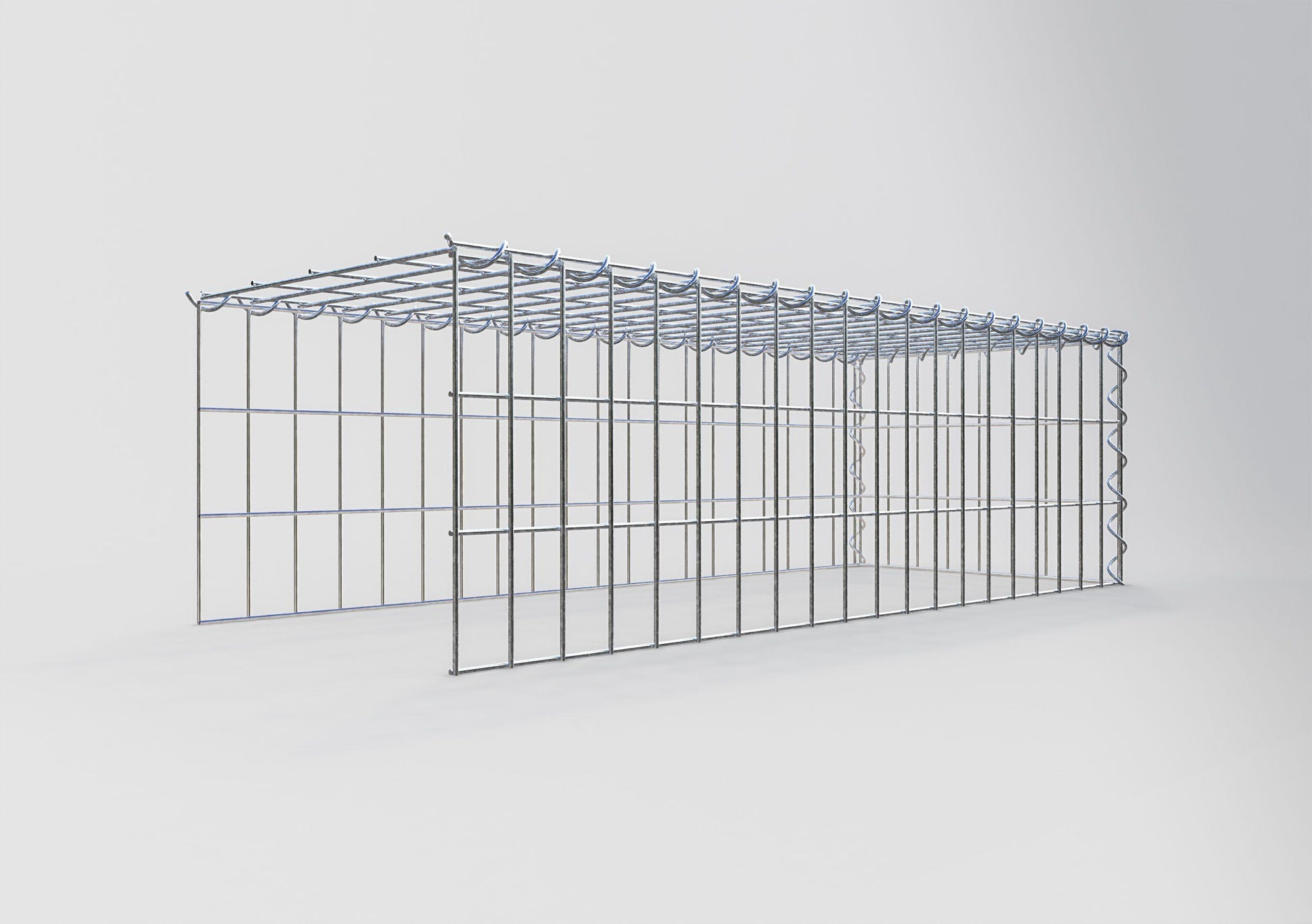 Este gabião não tem grade frontal e inferior. Isso permite que seu gabião cresça tanto em comprimento quanto em altura. Observe que o