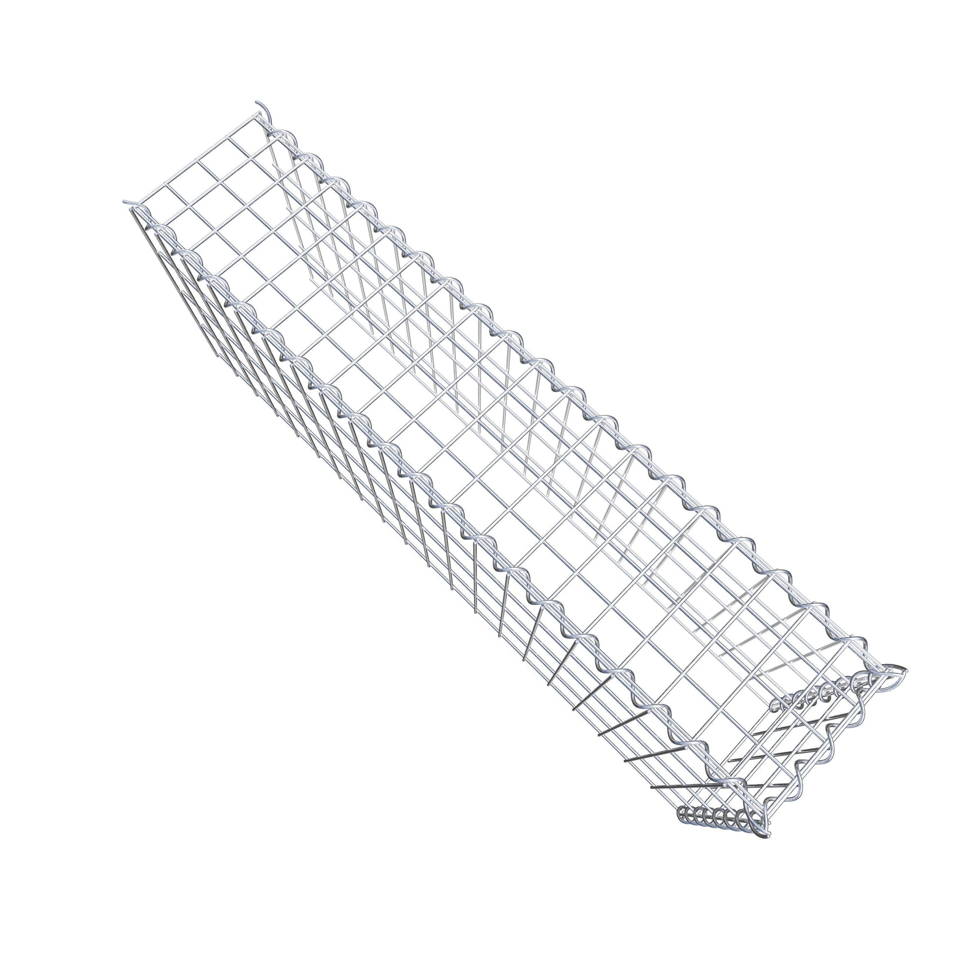 Este gabião não tem grade frontal e inferior. Isso permite que seu gabião cresça tanto em comprimento quanto em altura. Observe que o
