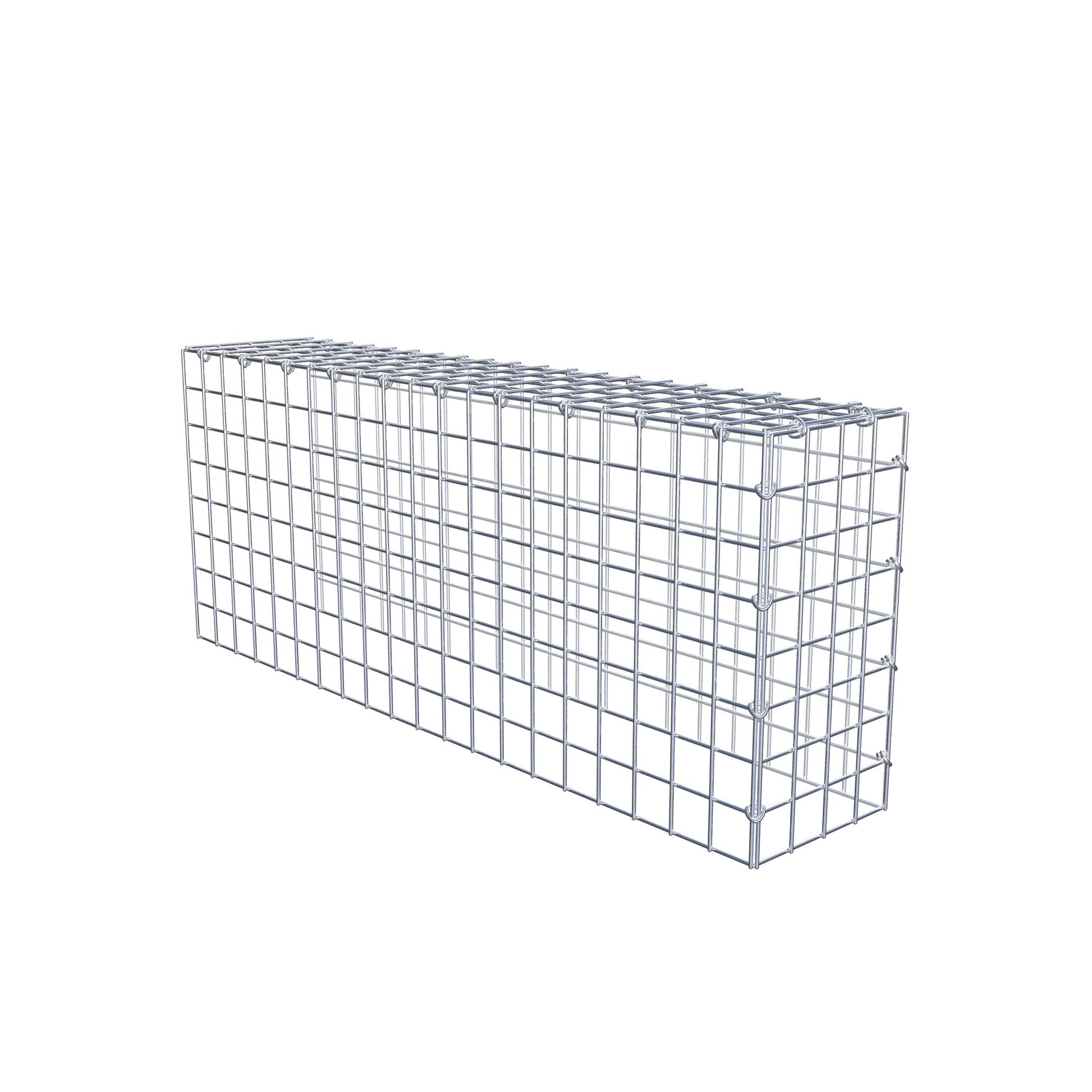 Este gabião não tem grade frontal e inferior. Isso permite que seu gabião cresça tanto em comprimento quanto em altura.
