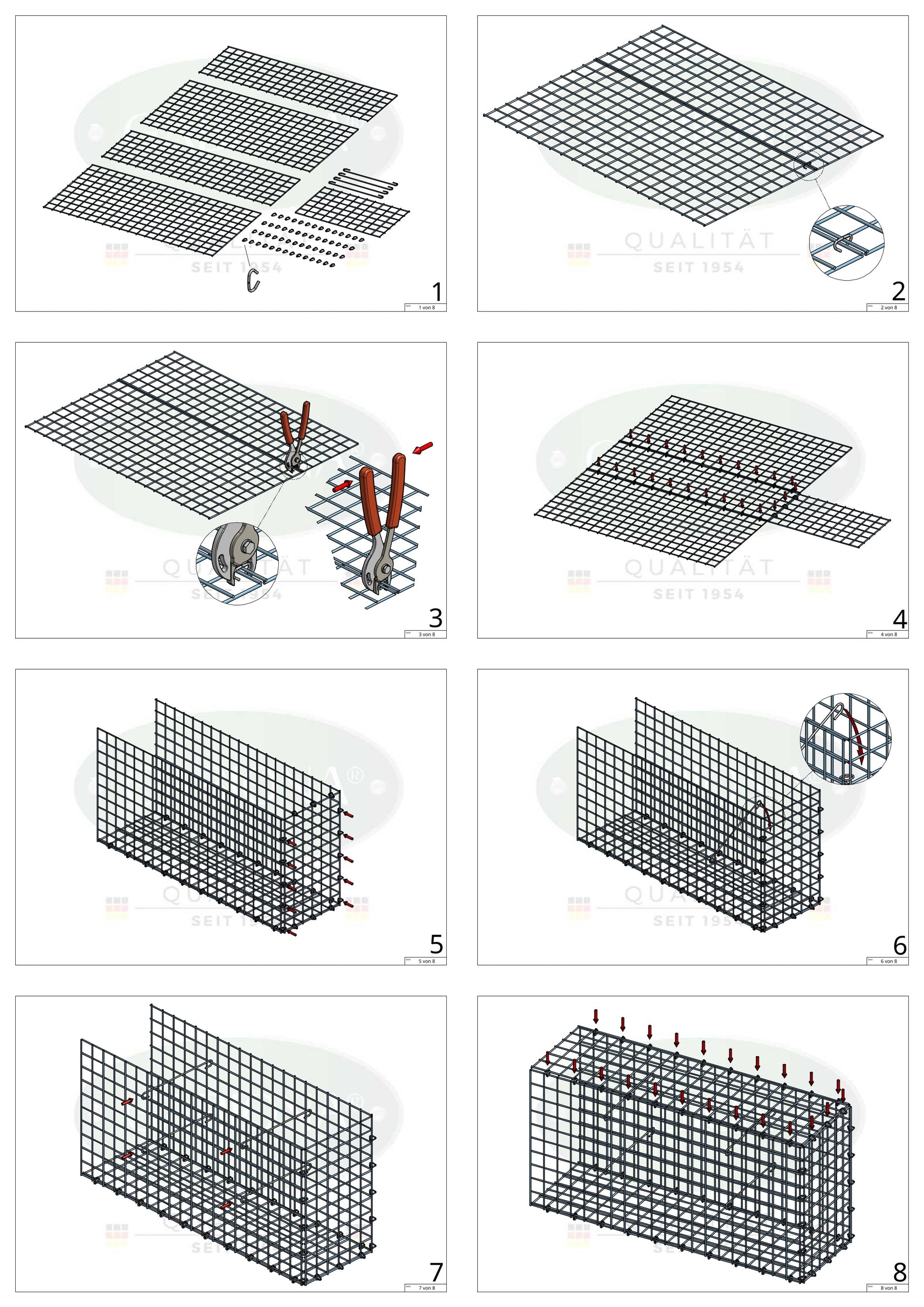 Anslut gallren enkelt och diskret med våra C-ringar. Använd den speciella tången för C-ringar (ingår i leveransen). Montera C-ringarna med ca 10 cm mellanrum för att få en säker fastsättning.