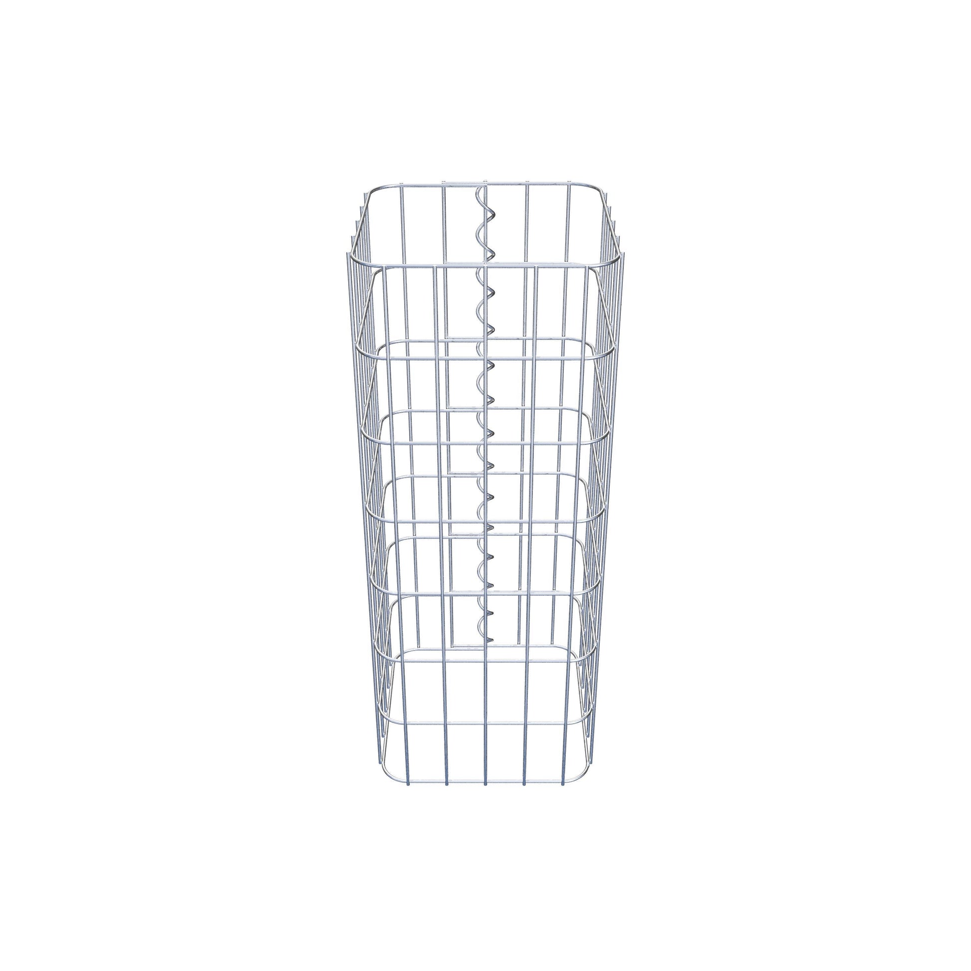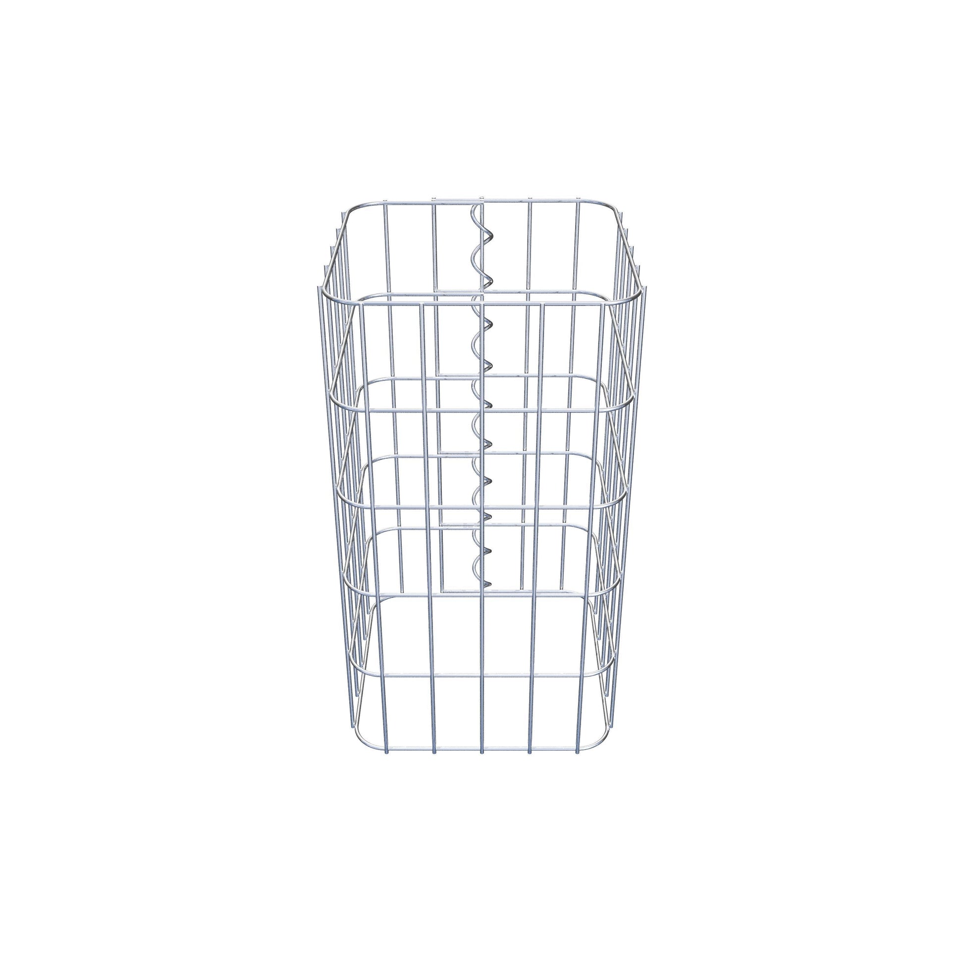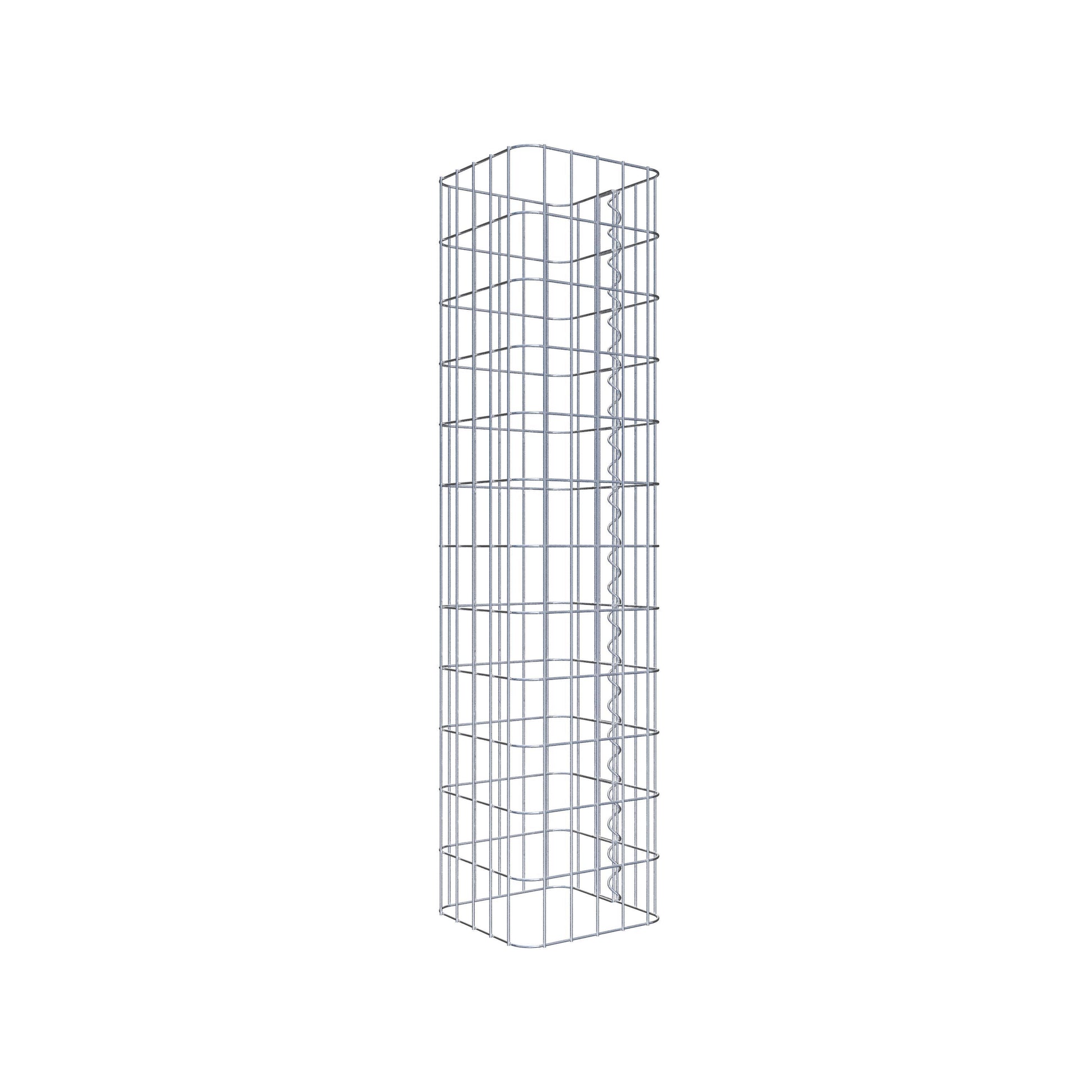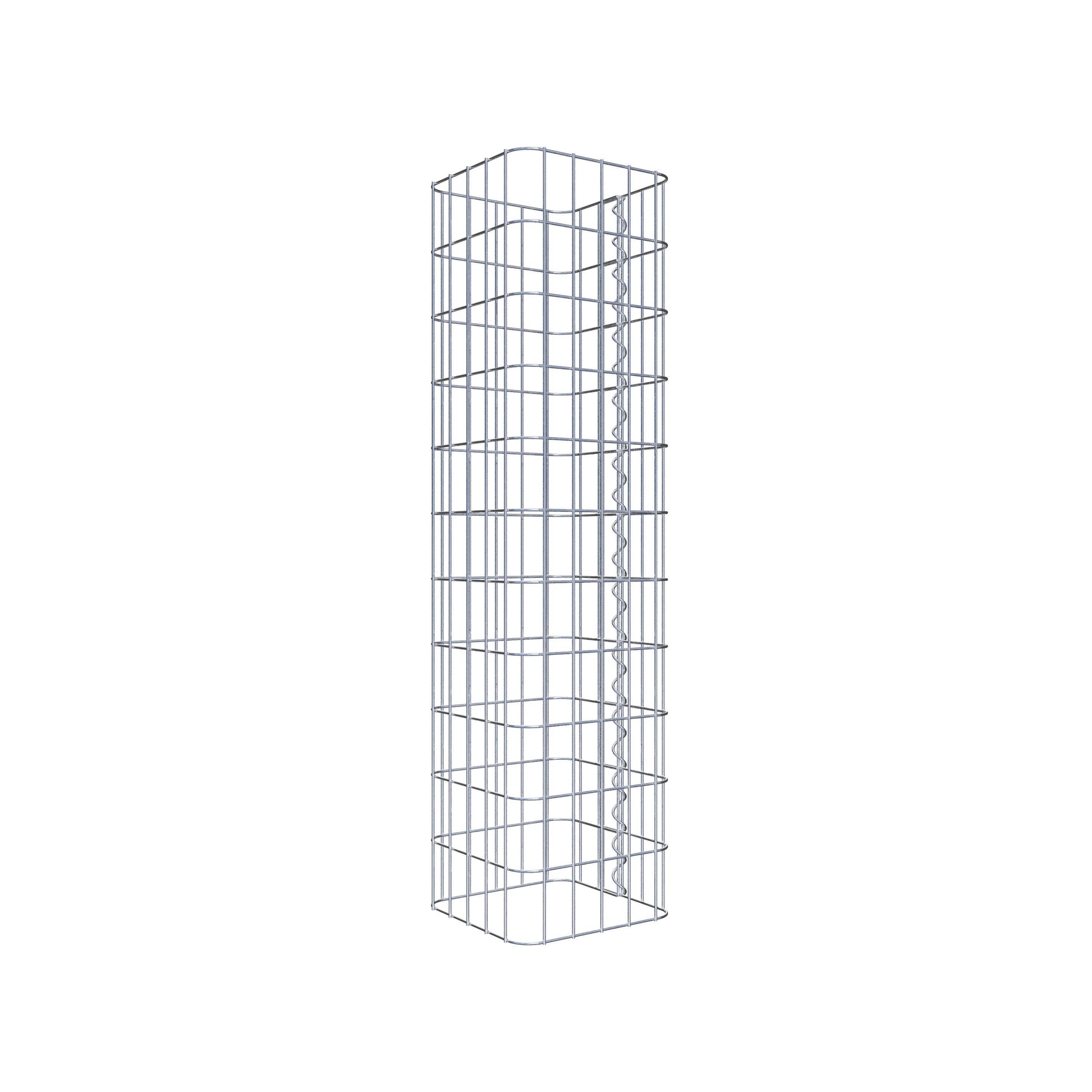 Sidostängningen görs vid gitterets enda överlappningspunkt med en spiral som helt enkelt skruvas in och pressas ihop. Detta skapar en ren, säker och permanent anslutning. Alternativt kan gabionpelaren också stängas med clips, som finns tillgängliga separat. Pelarna är öppna upptill och nedtill - ett bottengaller eller lock behövs inte och ingår därför inte i leveransen. Ett lock kan köpas separat om så önskas.