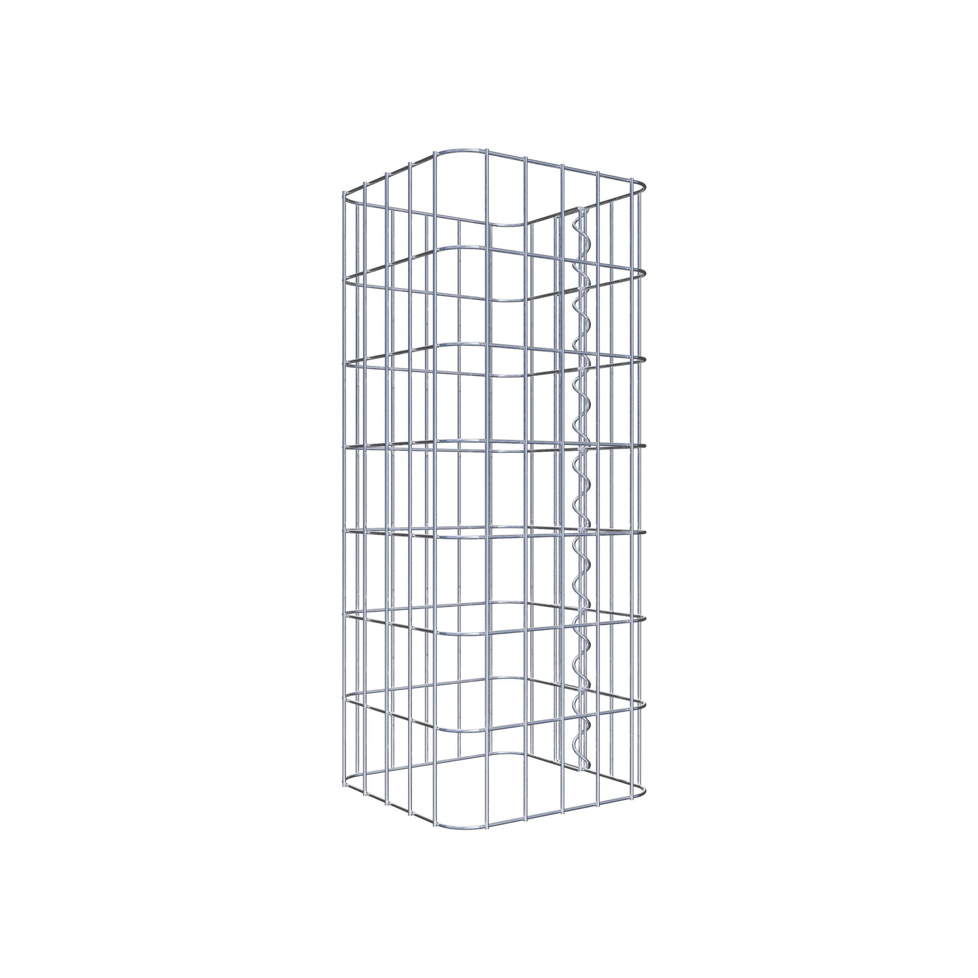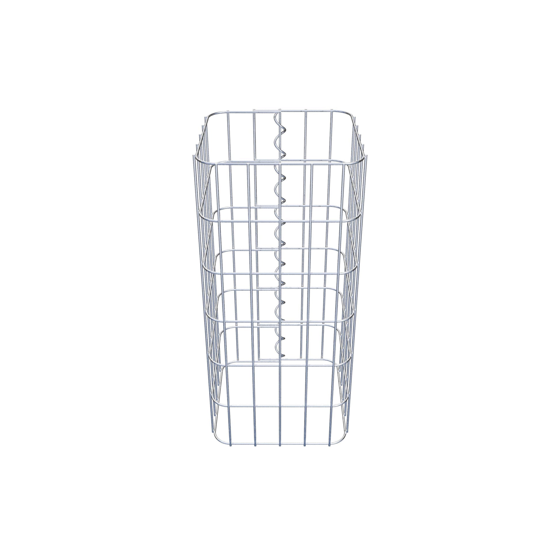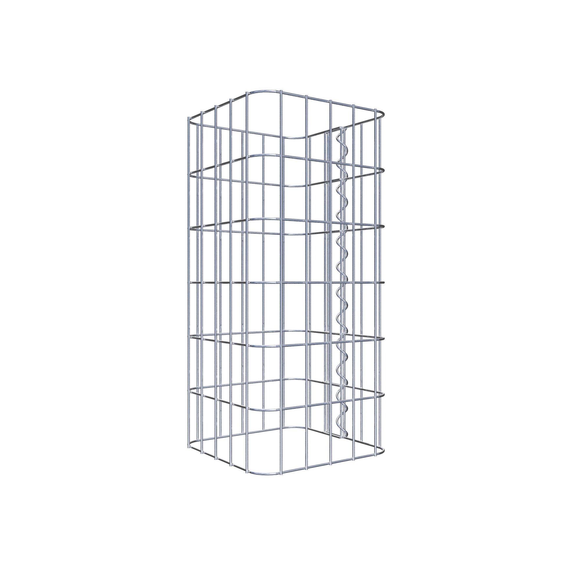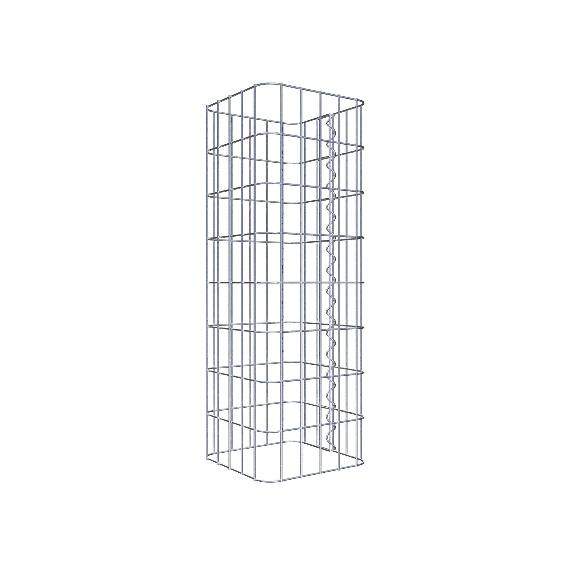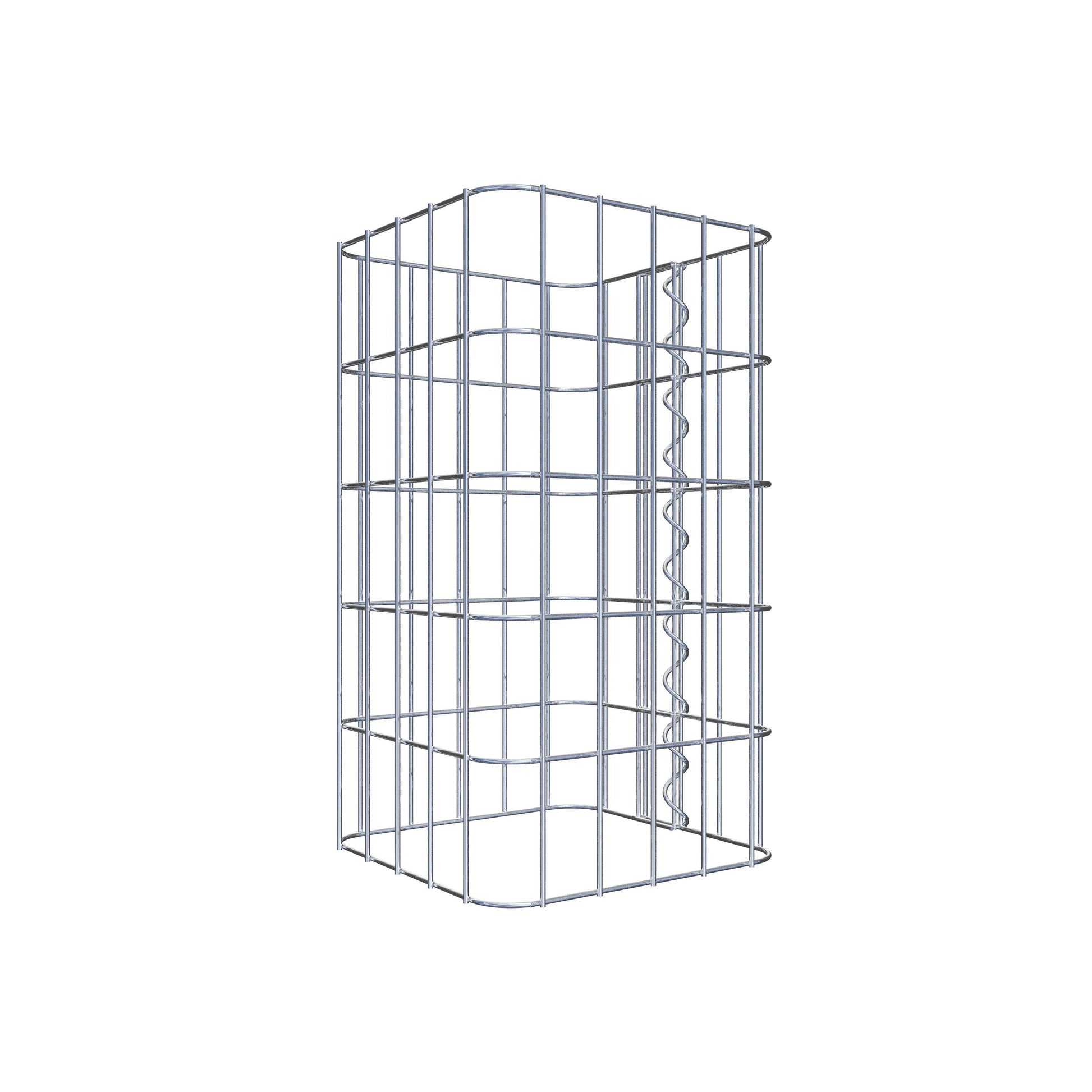 Sidostängningen görs vid gitterets enda överlappningspunkt med en spiral som helt enkelt skruvas in och pressas ihop. Detta skapar en ren, säker och permanent anslutning. Alternativt kan gabionpelaren också stängas med clips, som finns tillgängliga separat. Pelarna är öppna upptill och nedtill - ett bottengaller eller lock behövs inte och ingår därför inte i leveransen. Ett lock kan köpas separat om så önskas.