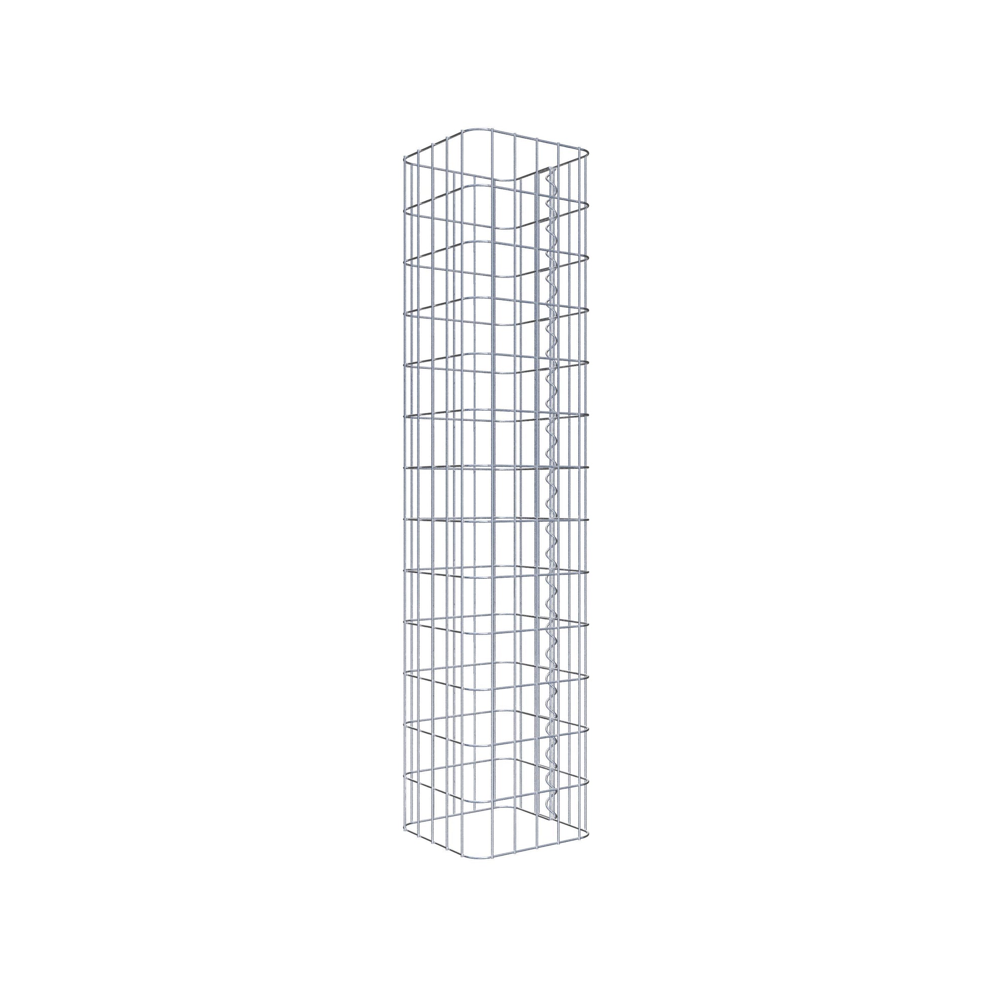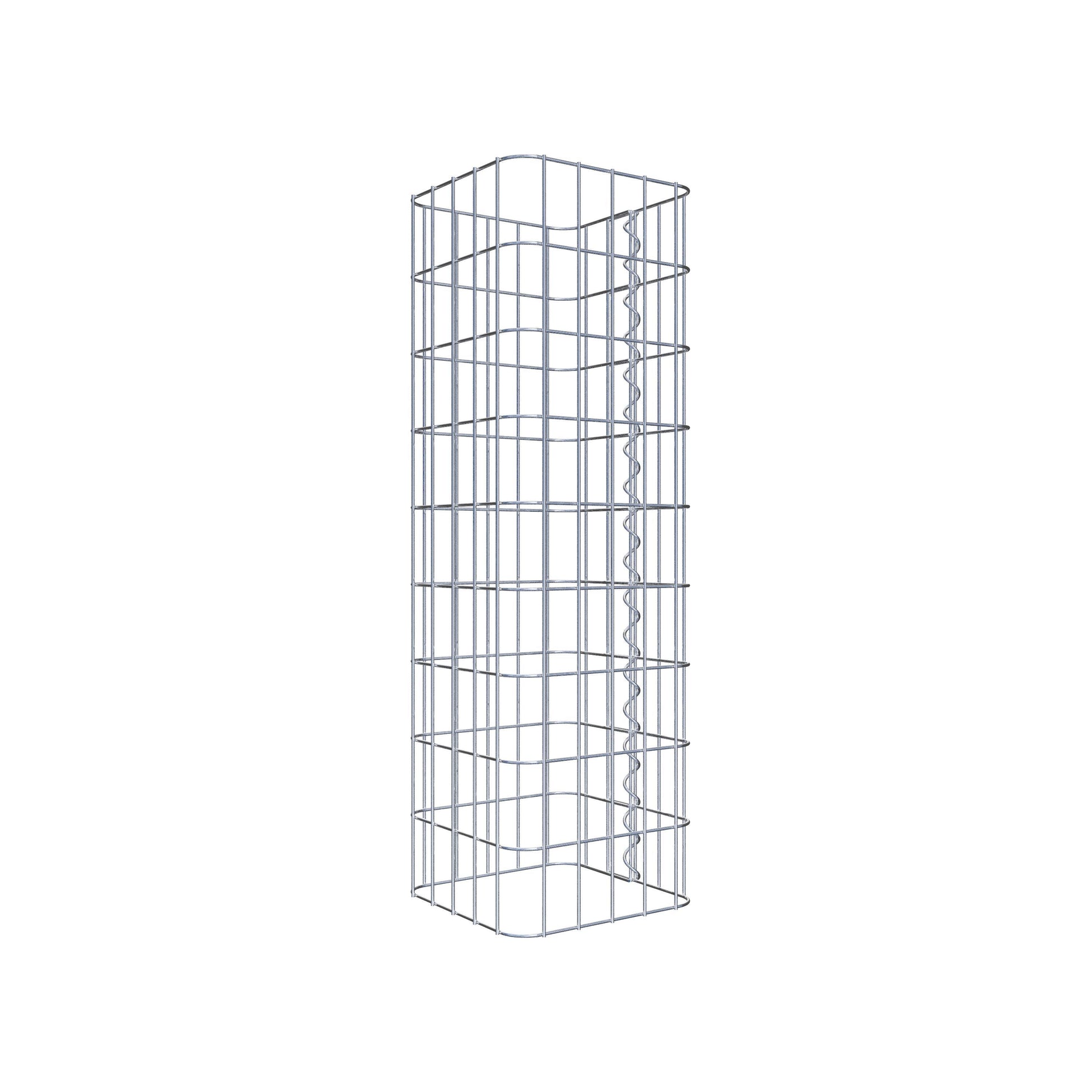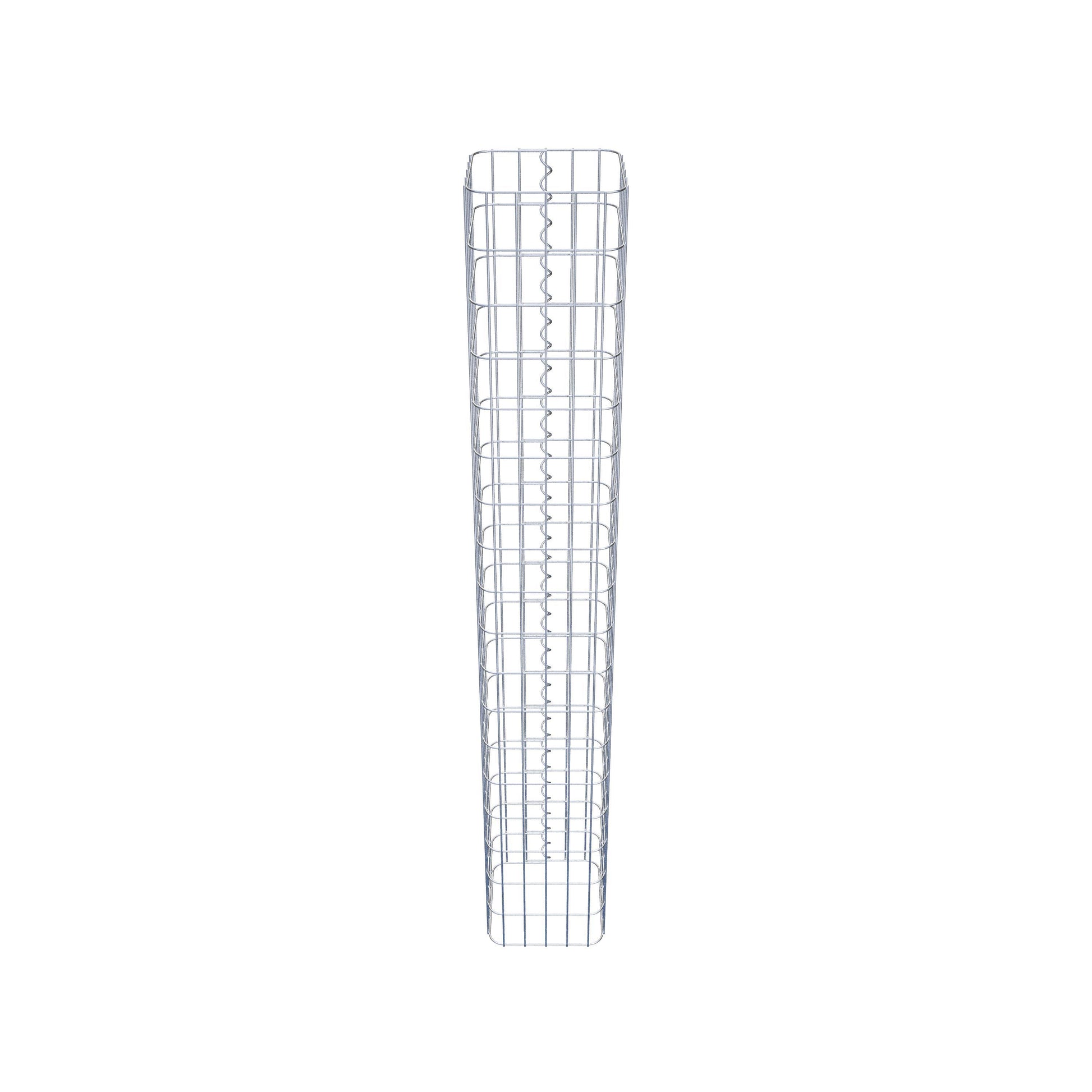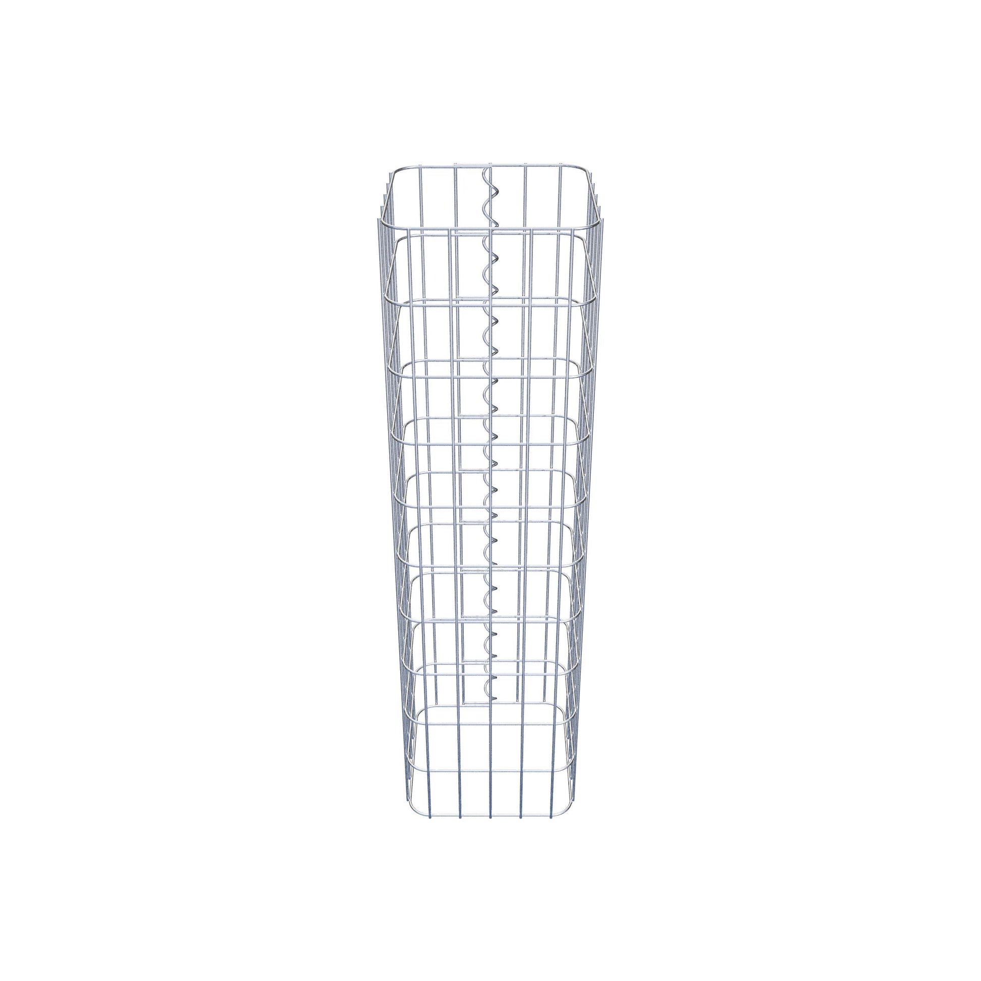 Sidostängningen görs vid gitterets enda överlappningspunkt med en spiral som helt enkelt skruvas in och pressas ihop. Detta skapar en ren, säker och permanent anslutning. Alternativt kan gabionpelaren också stängas med clips, som finns tillgängliga separat. Pelarna är öppna upptill och nedtill - ett bottengaller eller lock behövs inte och ingår därför inte i leveransen. Ett lock kan köpas separat om så önskas.